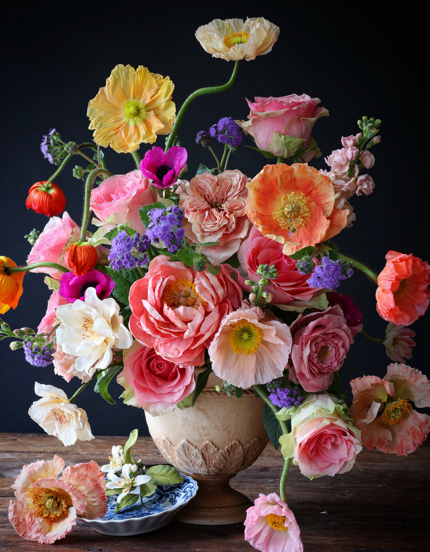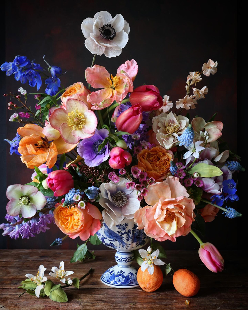 Я завжди роблю крок назад і милуюся розкішною квітковою композицією, перш ніж уважніше розглянути її деталі. Далі йде тривалий час на вивчення та моделювання кожної частини квітки. Я вдячна за натхнення та ресурси Амстердаму, який надає простір для вивчення різноманітних форм, кольорів і текстур сезонних квітів. Доступність такого розмаїття дійсно надихає.