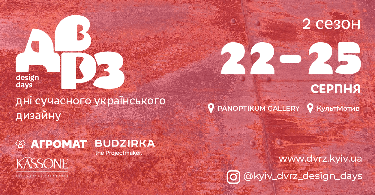 З 22 по 25 серпня в Києві вдруге відбудуться дні сучасного українського дизайну — ДВРЗ Design Days. Це дослідницька і просвітницька платформа, що покликана сприяти розвитку індустрії промислового дизайну та підтримати українських виробників. В основі її ідеї — філософія «своє для своїх» (local to local).