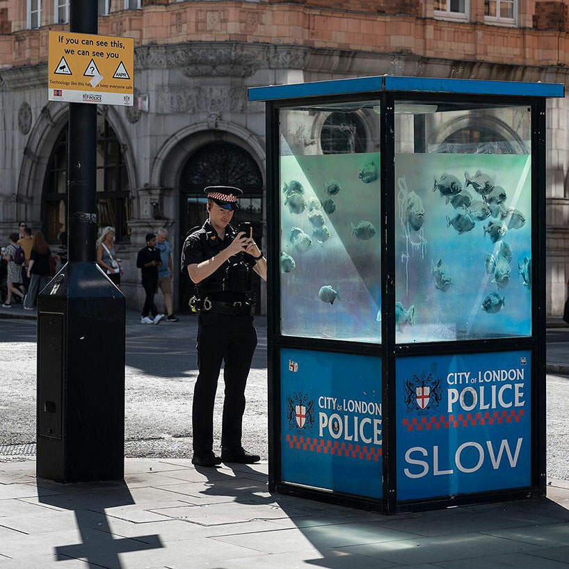 Нові графіті Бенксі також містять малюнки, складні до пошуків глибокого сенсу. Так, на одній з лавок, яка торгує морепродуктами, художник намалював двох пеліканів, зайнятих споживанням риби.