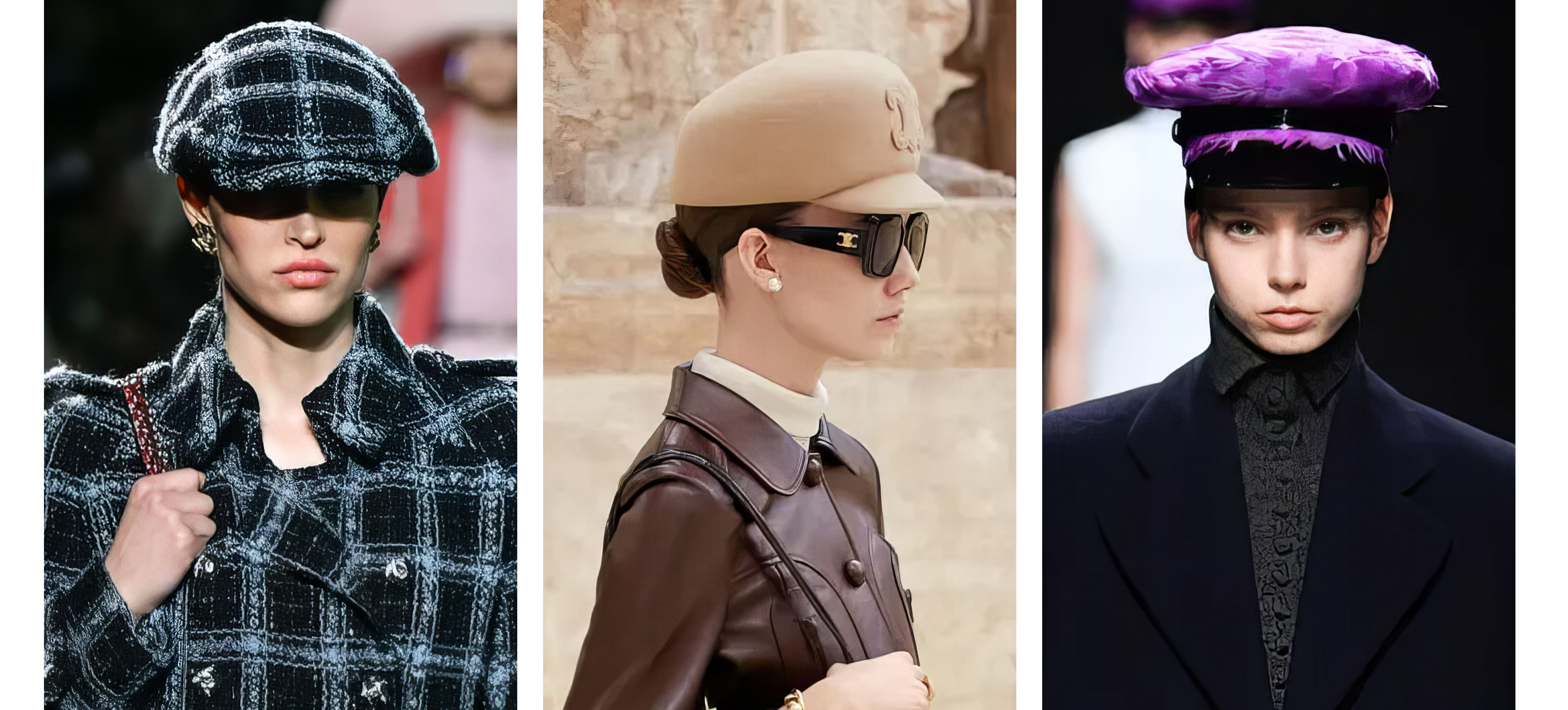 З твіду чи оксамиту — лідером серед головних уборів цього сезону стануть різновиди кашкетів. Під акомпанемент контрастної романтики й строгості Міучча Прада й Раф Сімонс рясно інтегрували річ у колекцію Prada. Chanel також не стали винятком, водночас Еді Сліман на чолі Celine додав із цим головним убором в образи грайливості та настрою ретро.