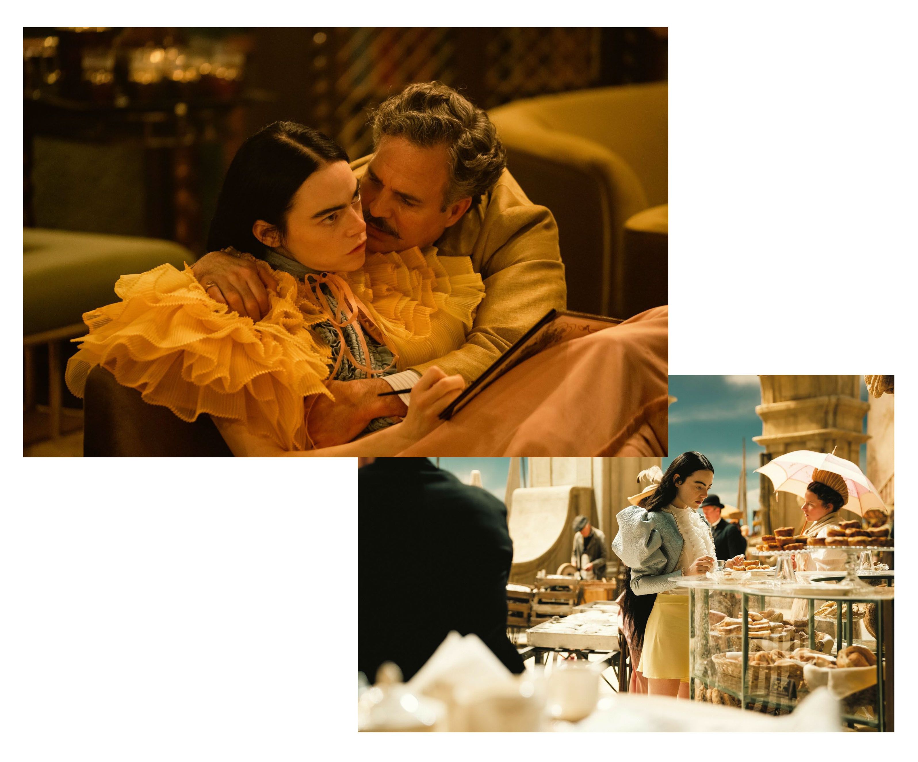 Макабрична історія з «Бідолашних створінь» Йоргоса Лантімоса стала цьогорічним кінотріумфом. Фільм розповідає про Беллу Бакстер у виконанні Емми Стоун, що оживає завдяки експерименту божевільного хірурга. Протягом шляху самопізнання героїня носить вікторіанські грайливі речі з об'ємними рукавами, рюшами, а згодом — прагматичний чорний спідничний костюм.