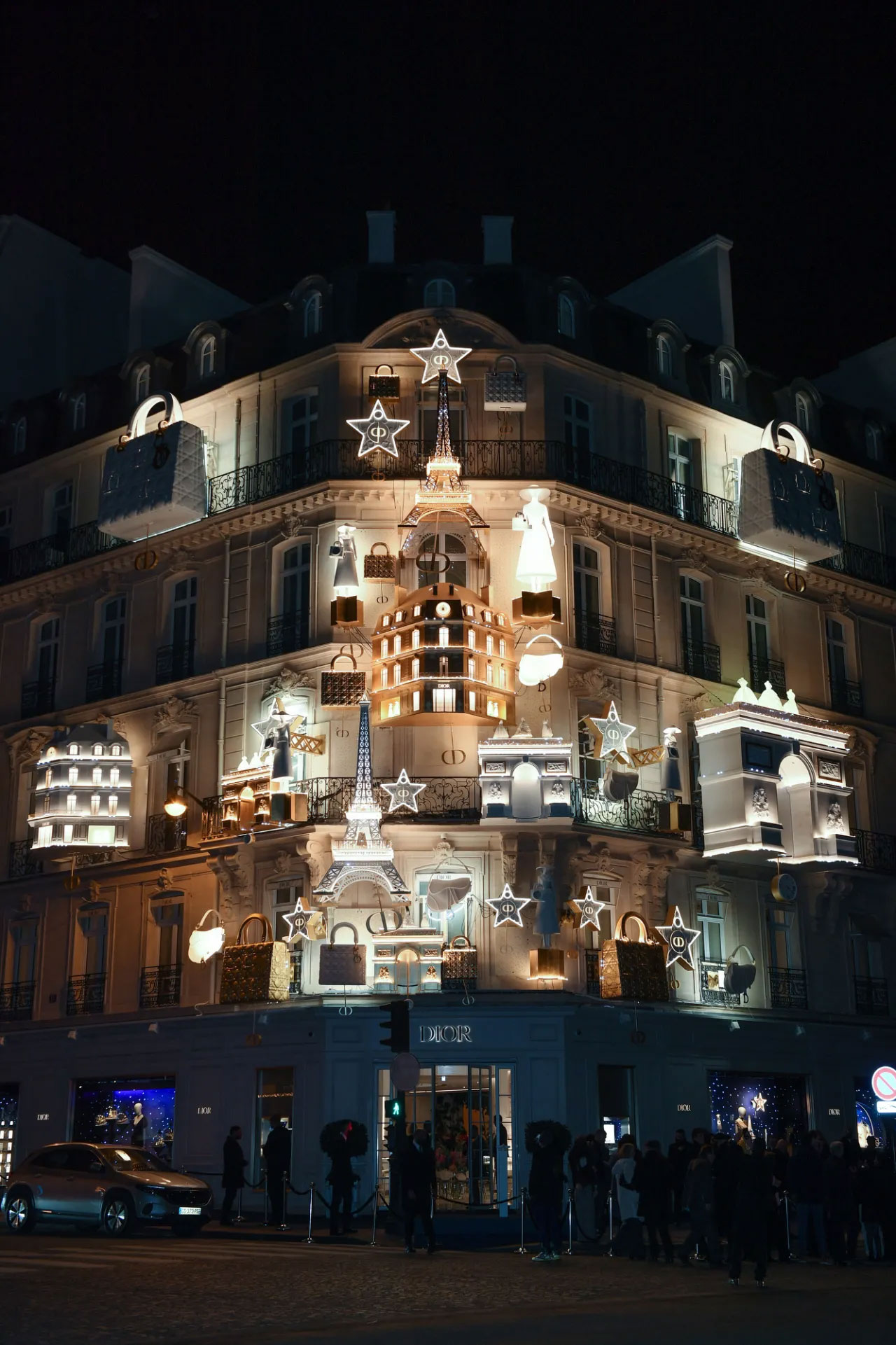 Після виняткових святкових вітрин, які Dior представили в Нью-Йорку та Лондоні в 2022 та 2023 роках відповідно, масштабні різдвяні фасади повернулися до флагманського бутику. Він поєднав як нові елементи, так і декорації минулих років, які, окрім важливості екологічного споживання, навіювали атмосферу ностальгії.