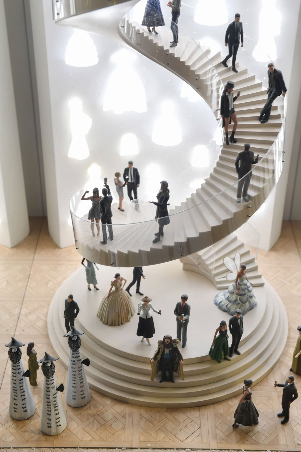 У вітринах, під скляними куполами, Дім розмістив декорації з імпровізованими святковими сценами. Так, під дахом бутику Dior у вигляді жакету The Bar розігрався етюд новорічних свят у колі родини, а в іншому куполі лялькові персонажі обирали святкові наряди серед знакових суконь Дому.