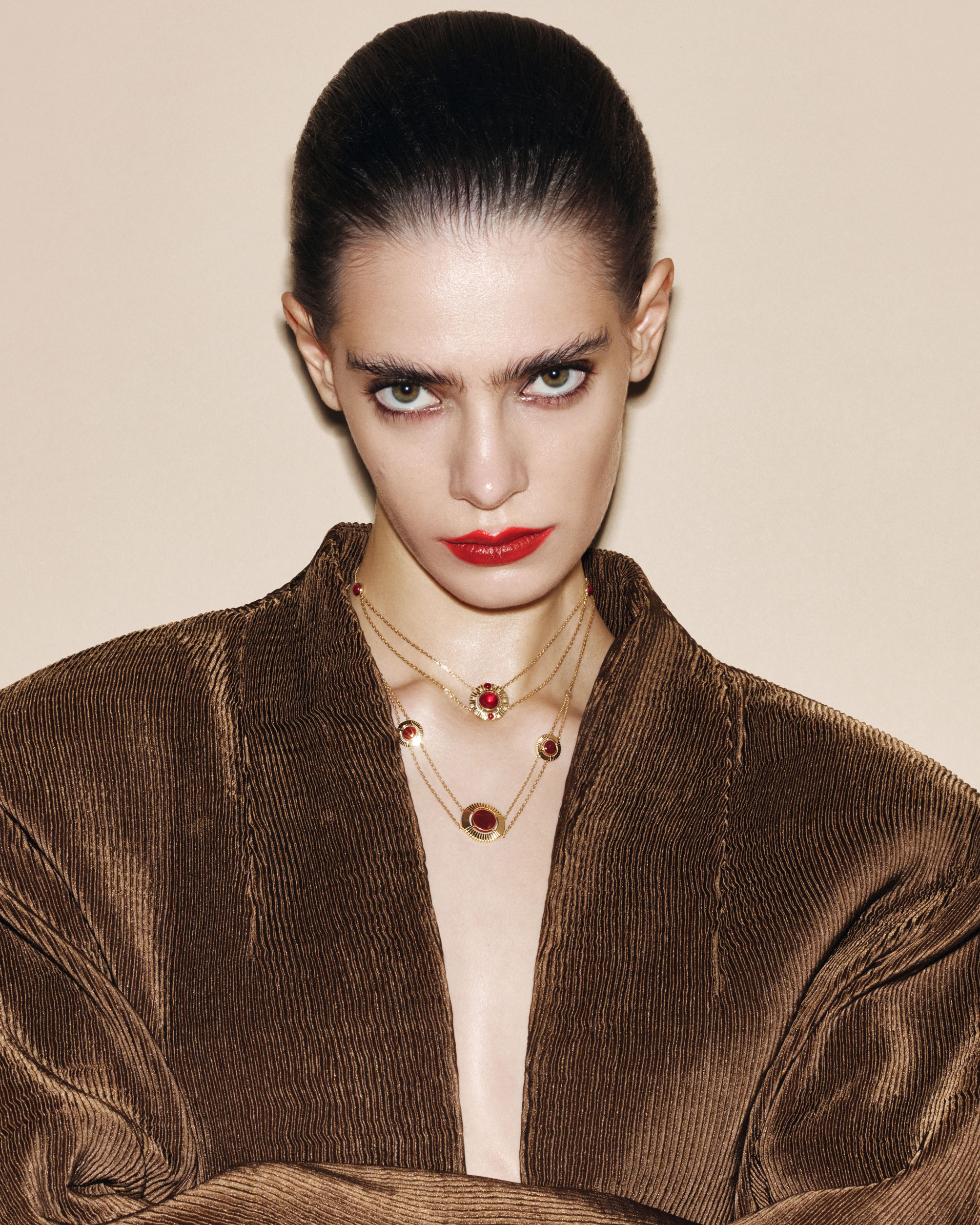 Загалом до колекції ROUGE увійшли сережки, каблучки, браслети, брошки, кольє, чокер і браслет на оксамитовій стрічці.