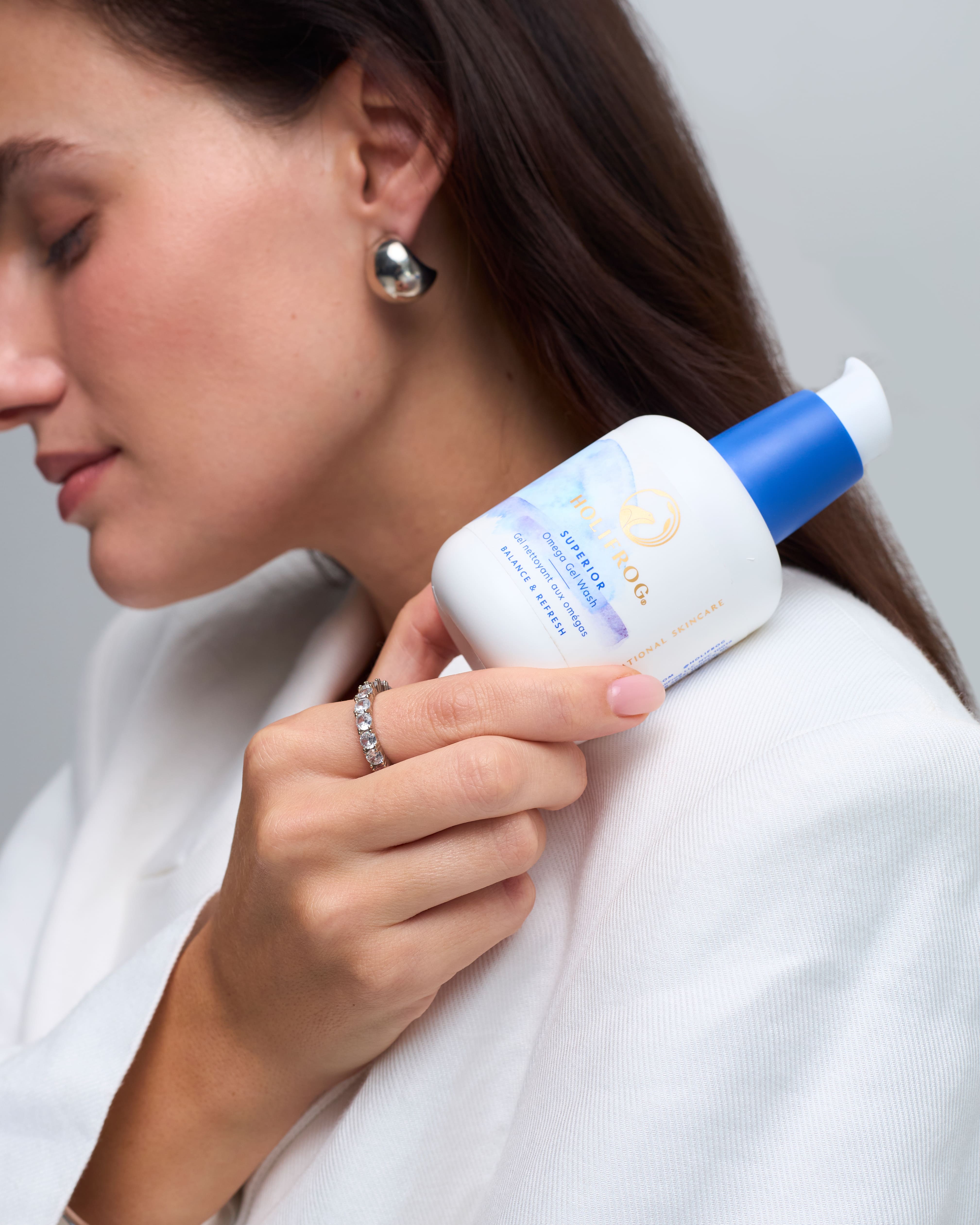 Цей щоденний очищуючий засіб американського бренду натуральної косметики HoliFrog швидко та м’яко видаляє забруднення, не пересушуючи шкіру, що є дуже важливим у холодну пору року. Окрім цього, гель для вмивання Superior Omega Gel Wash працює із недосконалостями та плямами на шкірі. Корисна комбінація збалансованих пробіотиків, таких як чайний гриб, багатих на омега олій, а також очищуючих рослинних компонентів допомагає зміцнити природний бар’ єр шкіри обличчя, водночас сприяючи більш свіжому вигляду.
