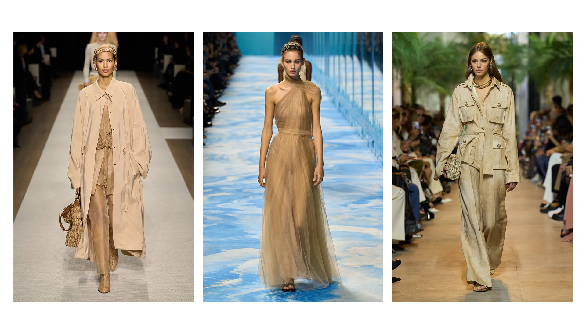 Цьогоріч бежевий, флагман нейтральності, виходить за межі статусу нудного кольору. Він постає елегантним і неземним, як на подіумі Dior, а також гармонічним в образах, де є акценти, як-от анімалістичні принти, масивні прикраси та гра з фактурами, що підтверджують Elie Saab і Giorgio Armani.
