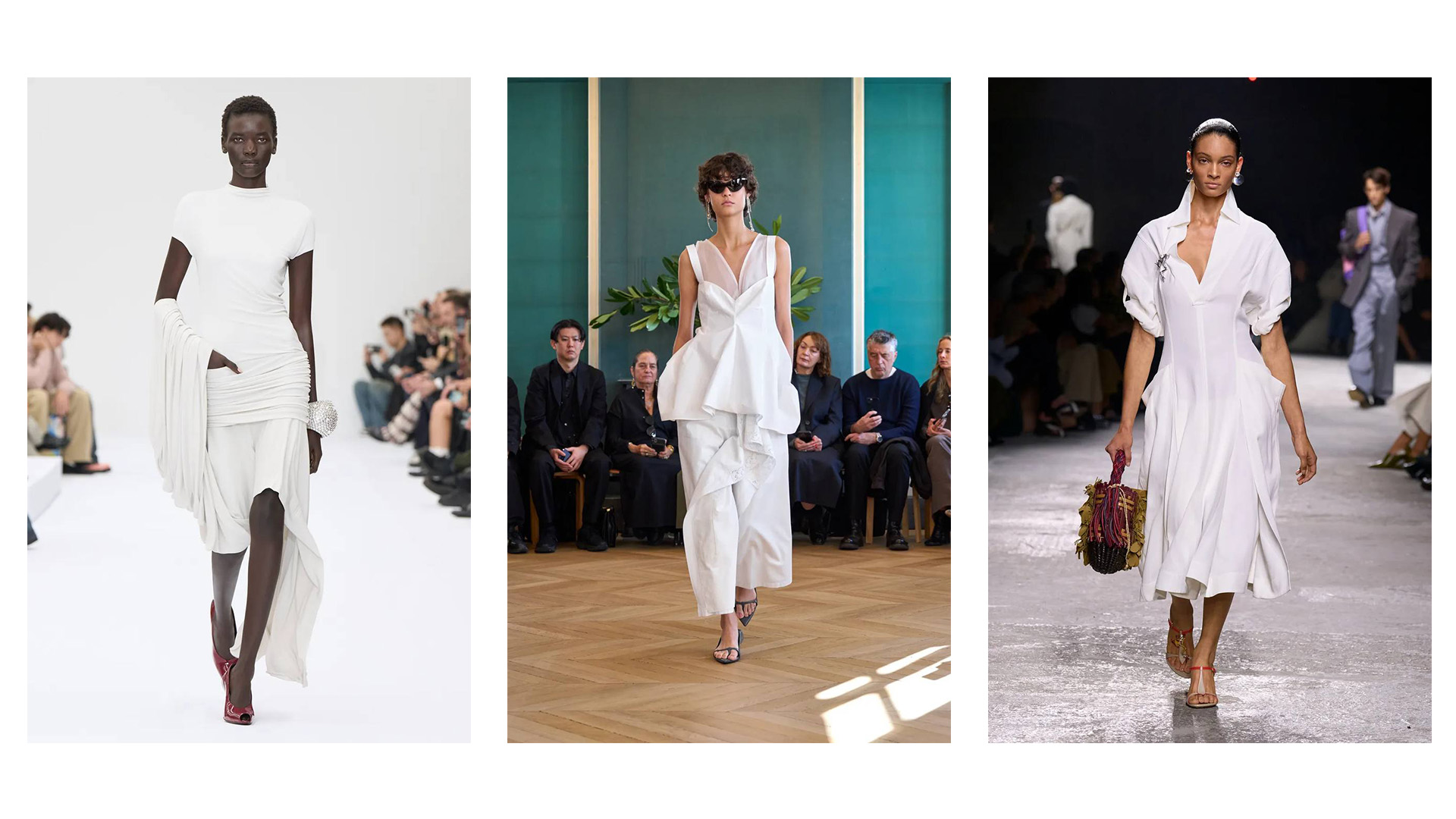 Беззаперечно, білий — класика серед кольорів, яка вирізняється елегантністю та благородним шармом. У сезоні весна-літо 2025 цей колір стане домінантним, з'явившись зокрема в драпірованих ансамблях Acne Studios, Carven і Bottega Veneta.