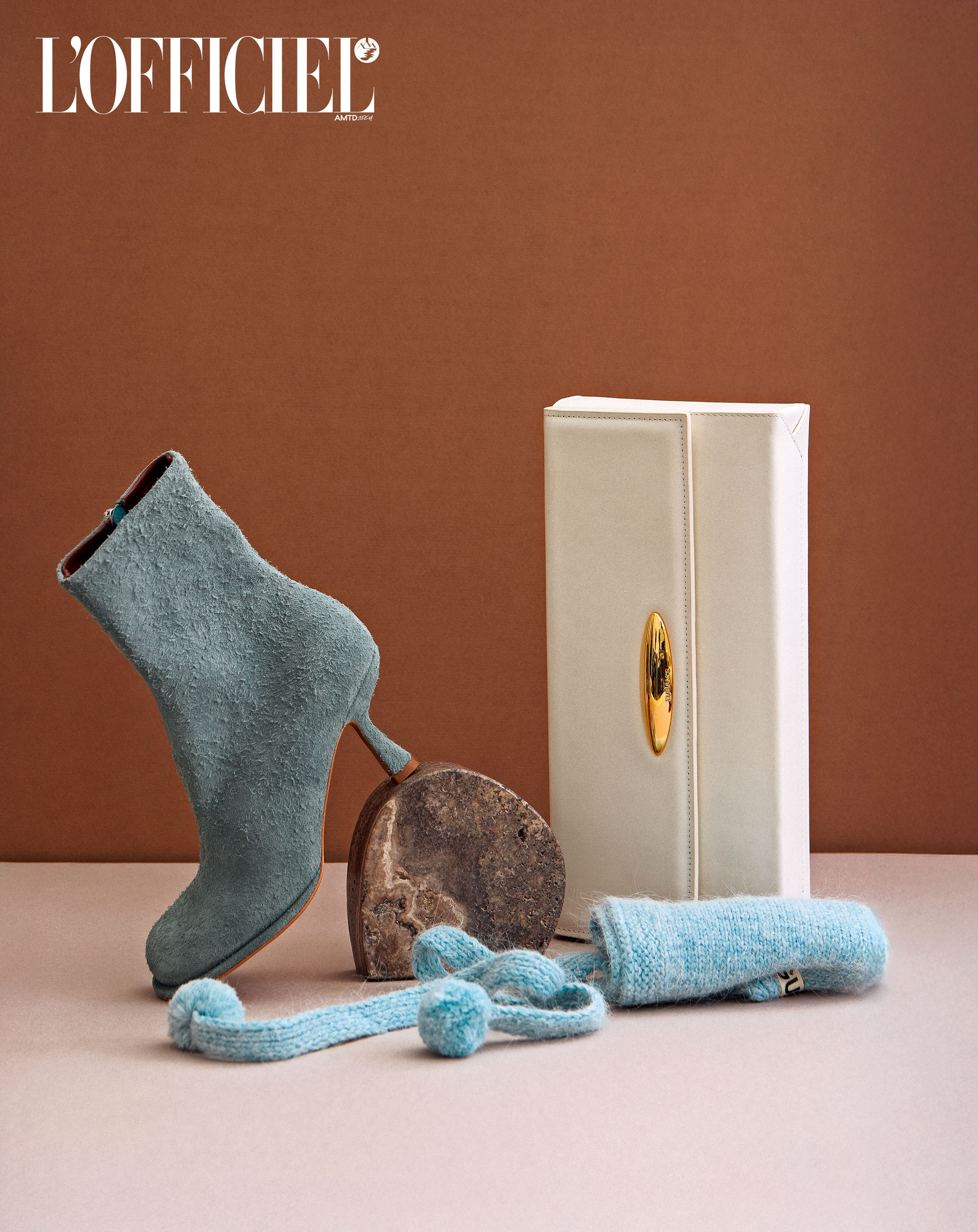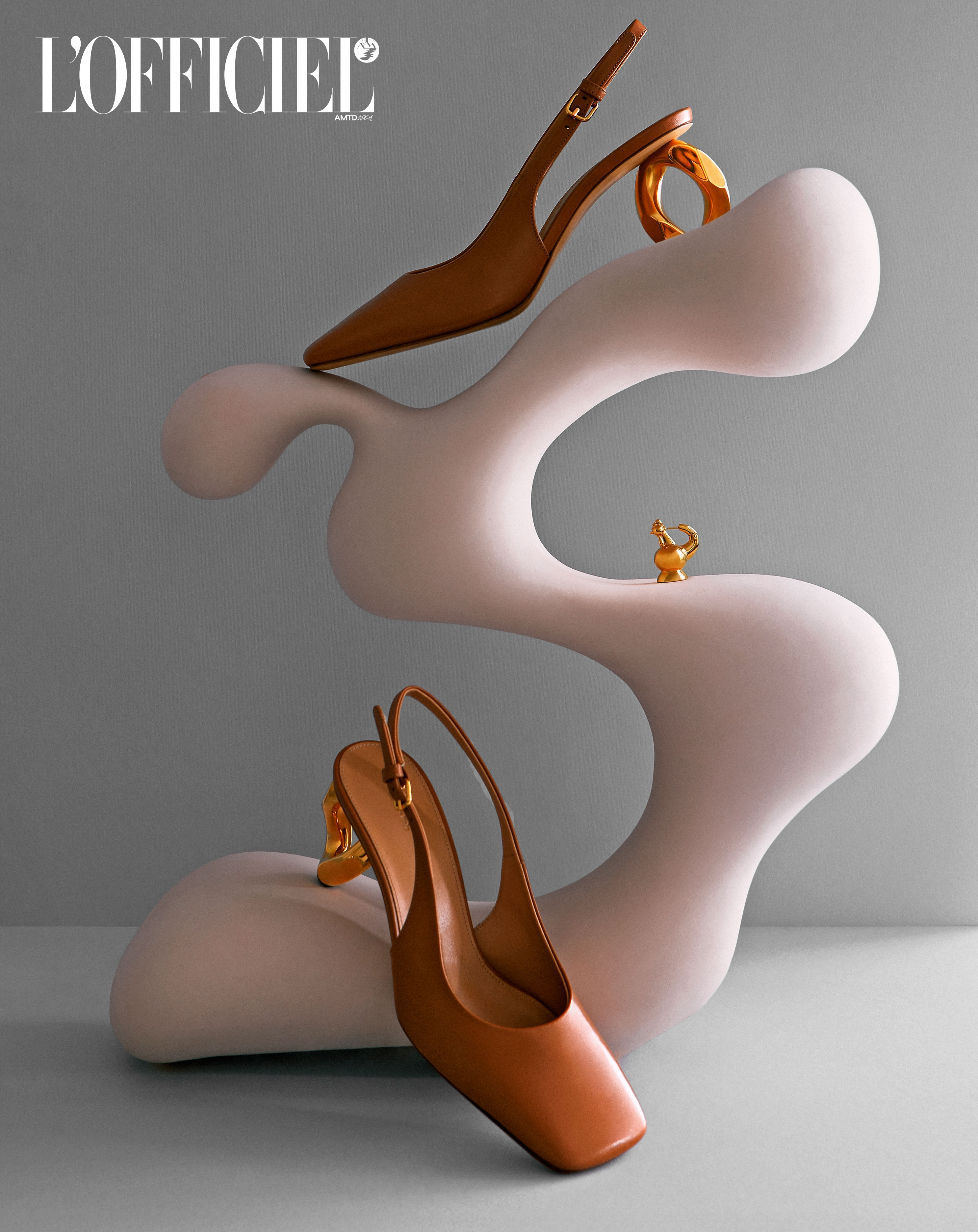 Шкіряні слінгбеки, JW ANDERSON (ЦУМ). Сережка «Півник», СРІБЛО З ПОЗОЛОТОЮ, GUNIA PROJECT. Кераміка, SOFIKA CERAMICS