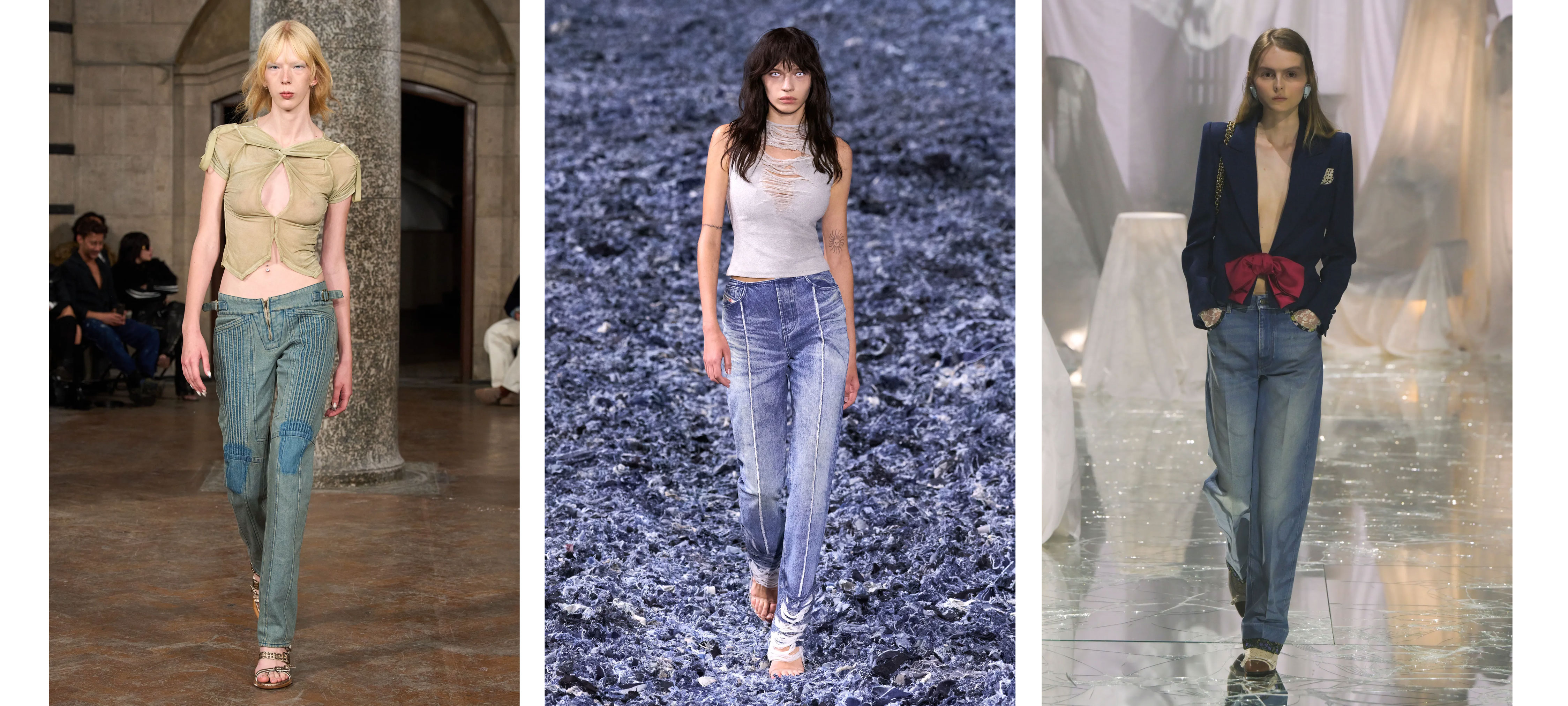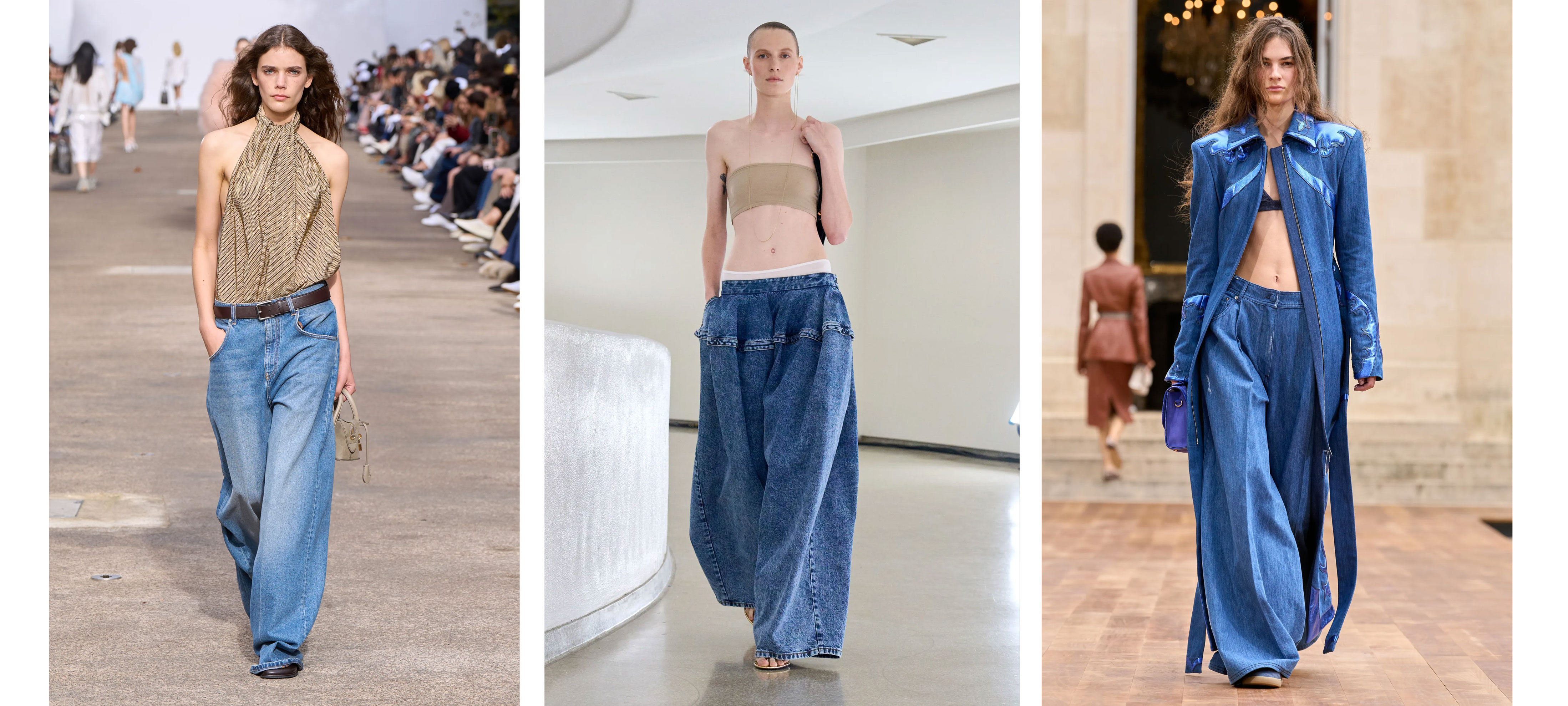 Дискусії щодо повернення джинсів скінні можуть зачекати, адже поки що дизайнери роблять ставку на широкі, мішкуваті моделі. Stella McCartney демонструють легку модну формулу з ними: додайте сяйливий верх — і ви готові підкорювати вечірні події. Свою любов до перебільшених пропорцій також продемонстрували Gabriela Hearst і Alaїa, погоджуючись, що «чим ширше, тим краще».