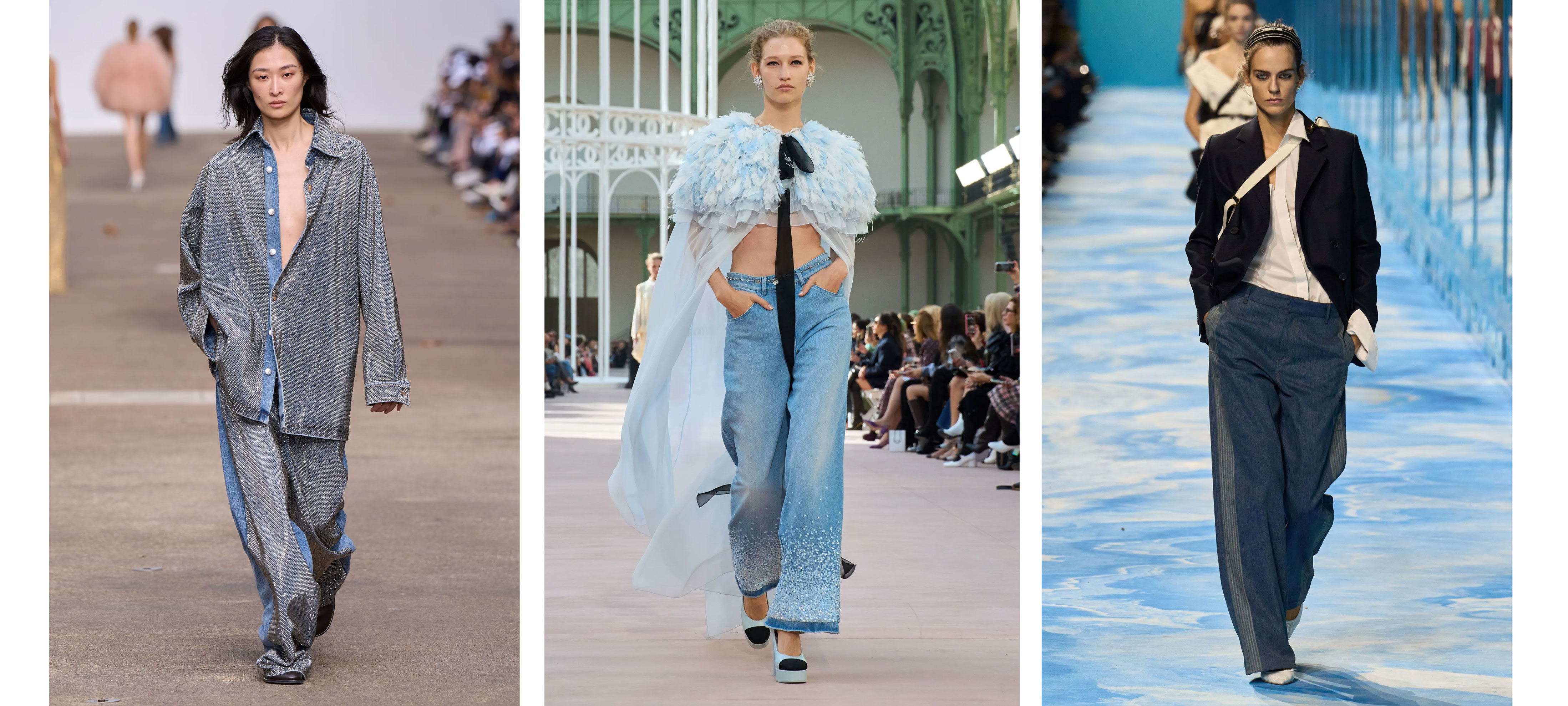 У сезоні весна-літо 2025 фешн-гравці спонукають урізноманітнити свій набір класичних джинсів, обираючи ті, що мають цікаві деталі. Для прикладу, Chanel і Stella McCartney оздобили денім блискітками, а Dior показали модель зі смугастими вставками.