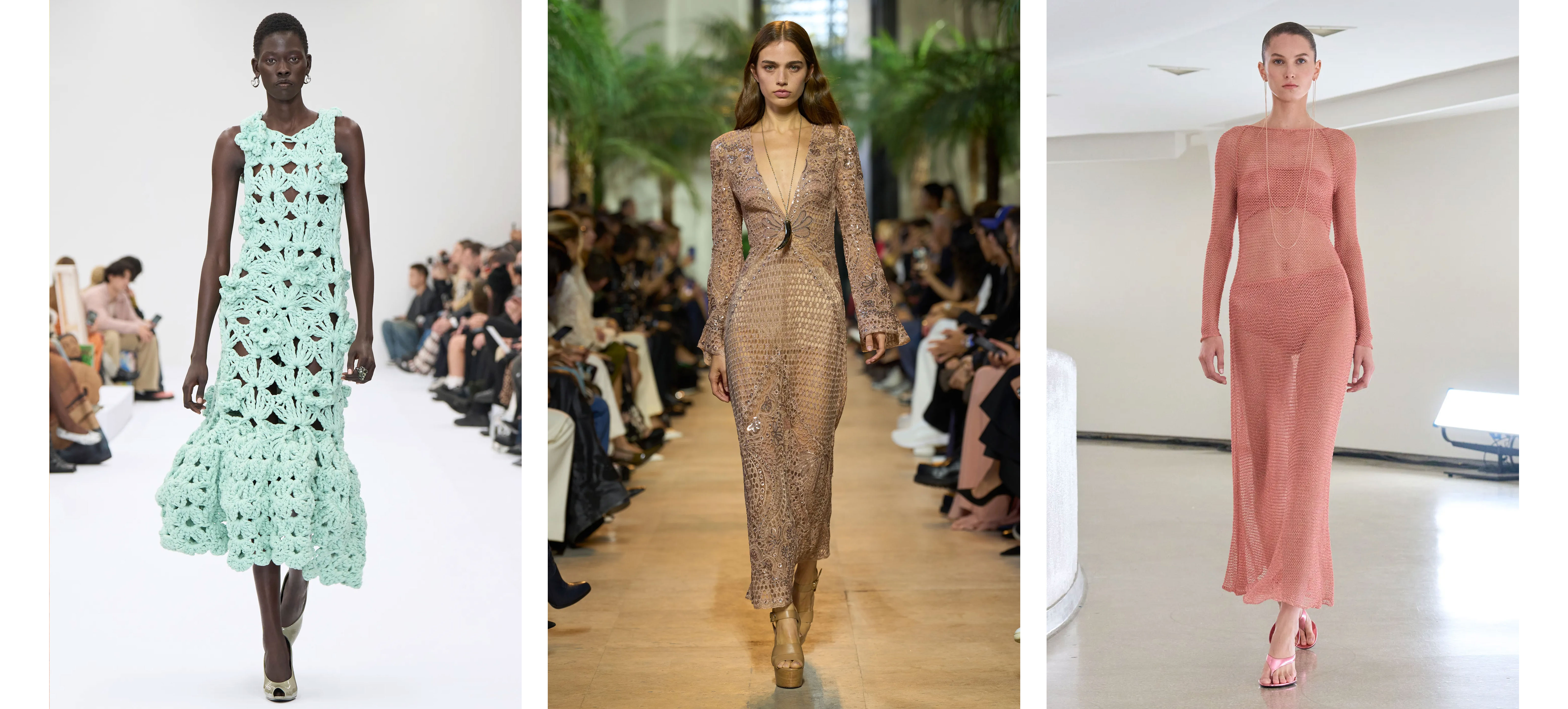Тепліші дні вже не за горами, тож саме час приглядатися до стильних речей, що супроводжуватимуть нас під час них. До таких актуальних позицій належать речі в техніці кроше, сітчасті, в’язані. Вони були помітними складниками колекцій Alaїa, Elie Saab і Acne Studios.
