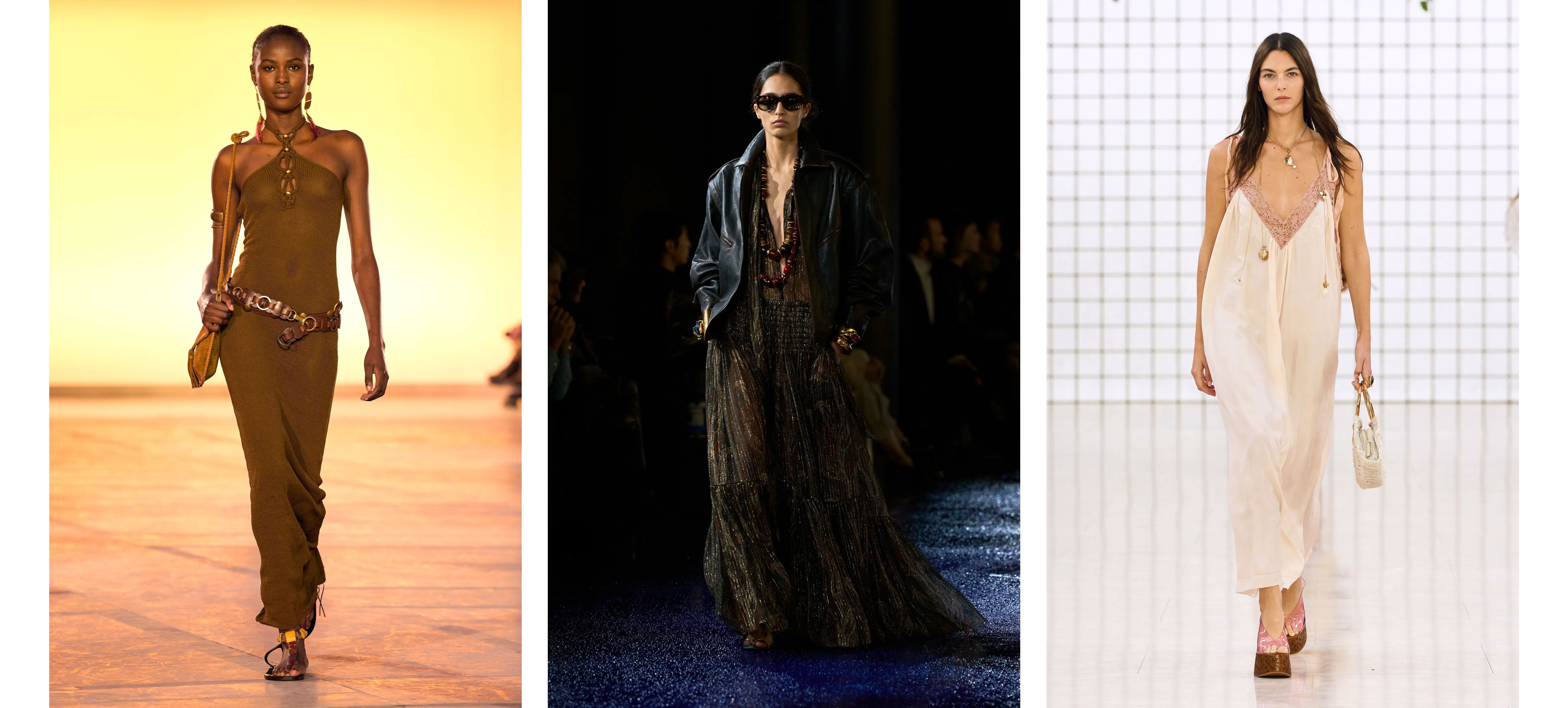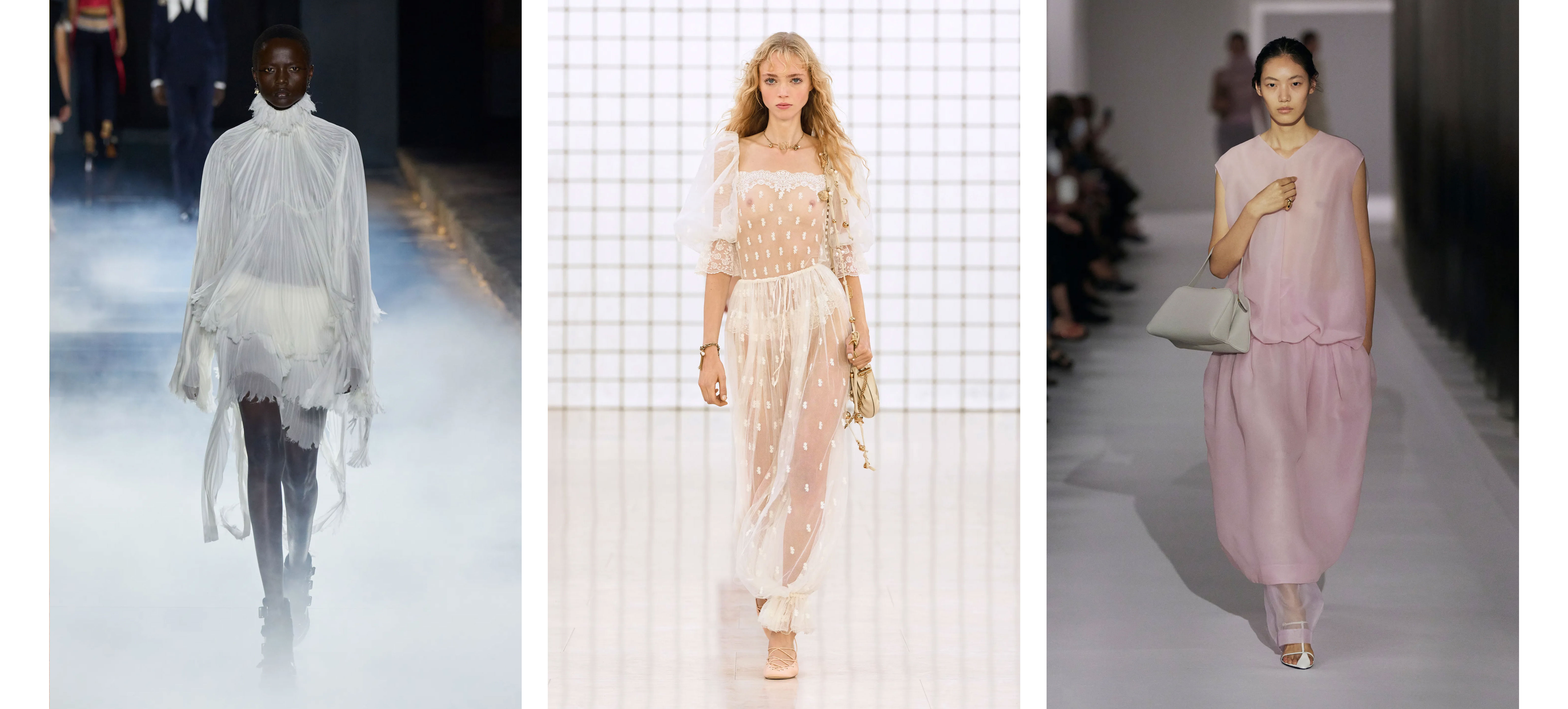 Упродовж минулих сезонів дизайнери досліджували грані «відкритого», зухвалого одягу з невагомими тканинами, мікро- шортами й топами. Цієї весни й літа тенденція не омине суконь, надаючи їм романтичного, спокусливого вигляду. Тренд у дії продемонстрували Chloé з ніжною мереживною білою сукнею, Alexander McQueen, що додали ансамблю вікторіанського настрою з декорованою горловиною, і Khaite з мрійливим вбранням із заниженою талією.
