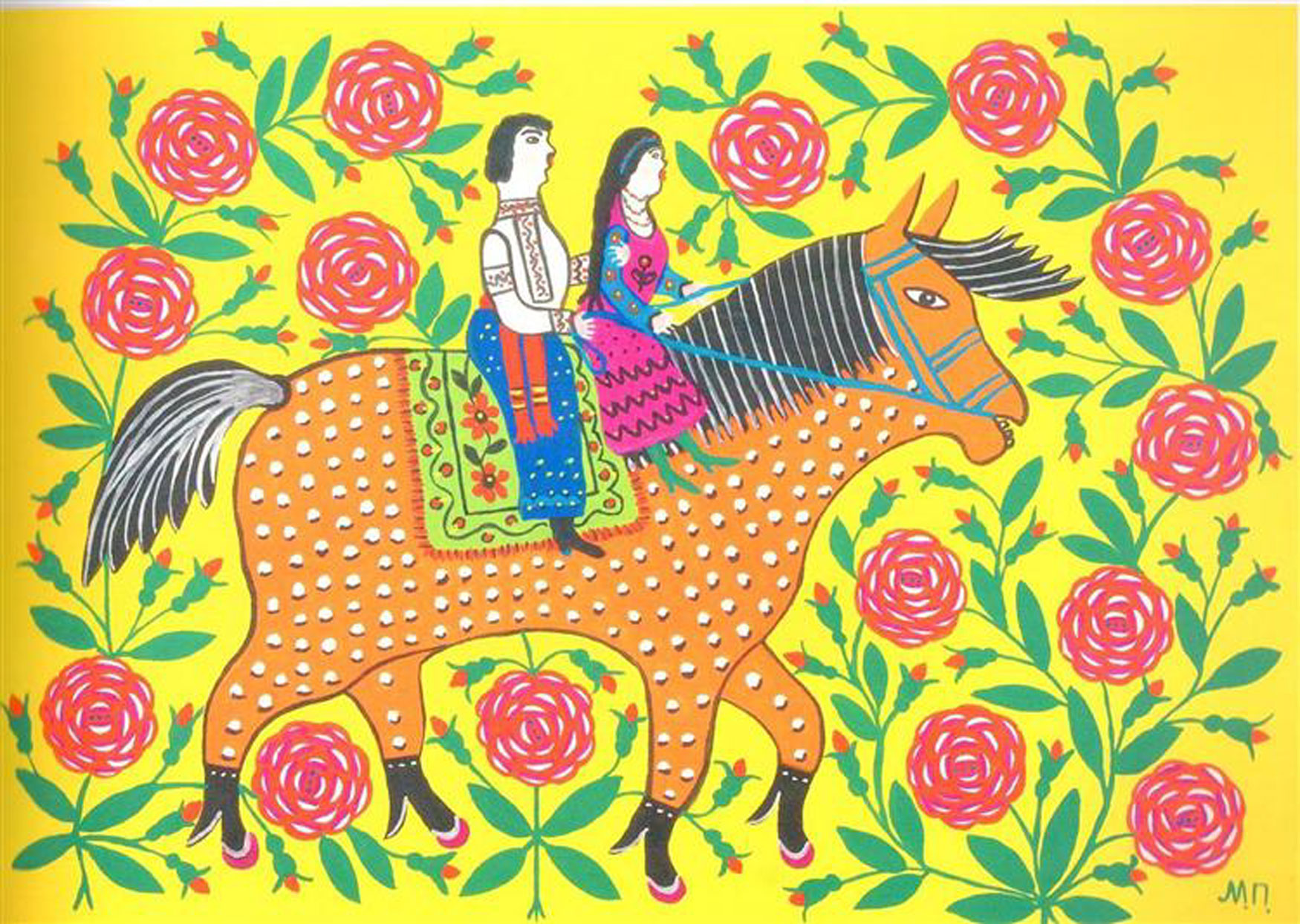 Марія Приймаченко. «Дівчинка з козаком на прогулянці», 1980-ті