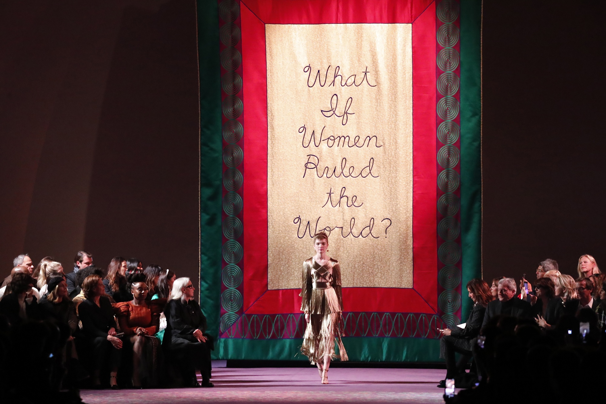 Гості показу Dior Haute Couture весна-літо 2020 заходили в «Божественну жінку», понад 75-метрову роботу-споруду Джуді Чикаго, яка відтворювала силует жіночого тіла. Цей подіум був доповнений банерами з питаннями, котрі ставили питання про те, як би могло змінитися суспільство, коли б жінки були політичними та духовними лідерами людства. Серед них і масивний банер із головним питанням: «Що, якби жінки правили світом?».
