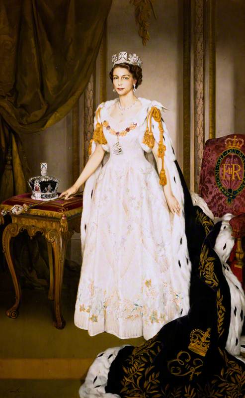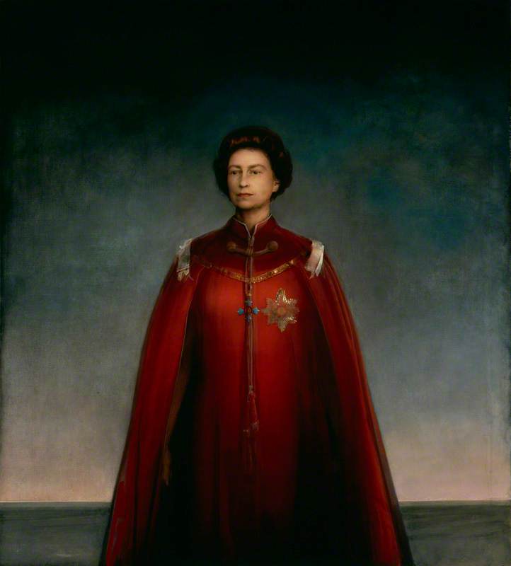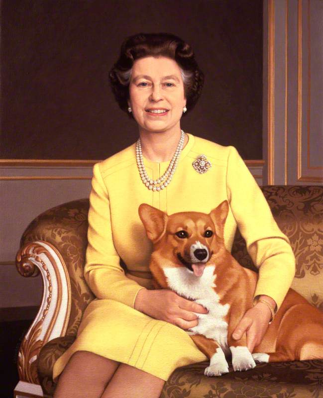 Ілюструє цю трансформацію портрет королеви Єлизавети II, створений Майклом Леонардом у 1986 році, де вона постає зі своїми улюбленцями коргі. Британський художник зазначив, що його ціллю було написати «пряму й досить неформальну картину, яка мала б здатність применшити віддаленість особливого становища Її Величності».