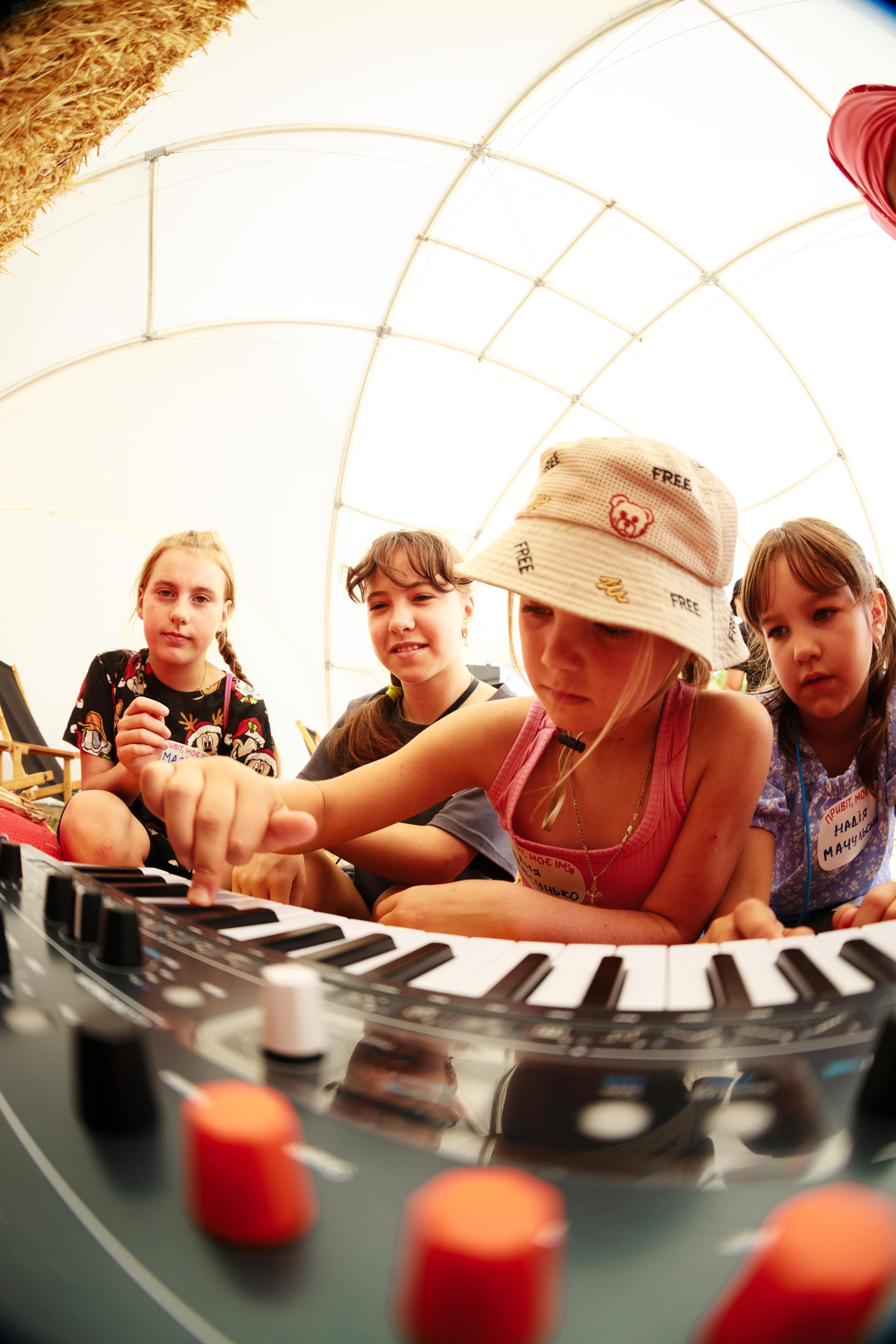 На «Блищику» в нас було багато воркшопів, як-от апсайклінг у моді, дизайн, архітектура, звукозапис, образотворче мистецтво й кіно. У кожному з них ми хотіли показати дітям, що вона, творчість, у всьому: в тому, що ти бачиш і можеш помітити. Для прикладу, не обов’язково мати суперкласну студію звукозапису, щоб створювати біти, треки. У нас діти просто ходили селом і записували звуки того, як падає каміння, шарудить листя.