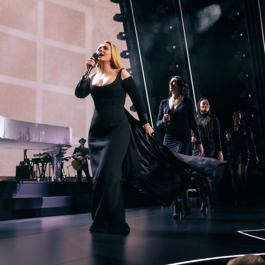 Любов виконавиці до чорної сукні була найбільш помітною під час концертної резиденції «Вихідні з Адель», що проходила з 2022 по 2024 рік у Лас-Вегасі. У її межах виконавиця щотижня з’являлася у кастомних винятково чорних сукнях провідних модних брендів — від Schiaparelli, Prada, Nina Ricci, Dior, Givenchy, Chloé, Armani, Ralph Lauren, Carolina Herrera, Valentino, Balmain, до Oscar de la Renta й до численних інших.