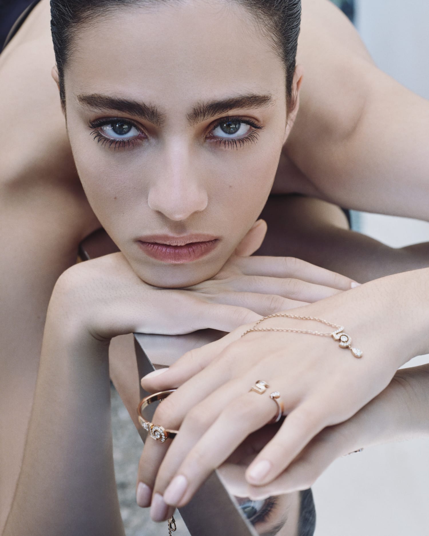 Зі свого боку невидима застібка браслета, прихована в серці культової цифри, імітує відкриття знакової застібки сумки 2.55. Як і нове намисто, цей браслет представлений у білому, бежевому та жовтому золоті. Крім того, на згадку про золотистий колір аромату N°5, Chanel презентує оновлене зібрання ETERNAL N°5 з ще одним браслетом, каблучкою та моносережкою — всі з жовтого золота.