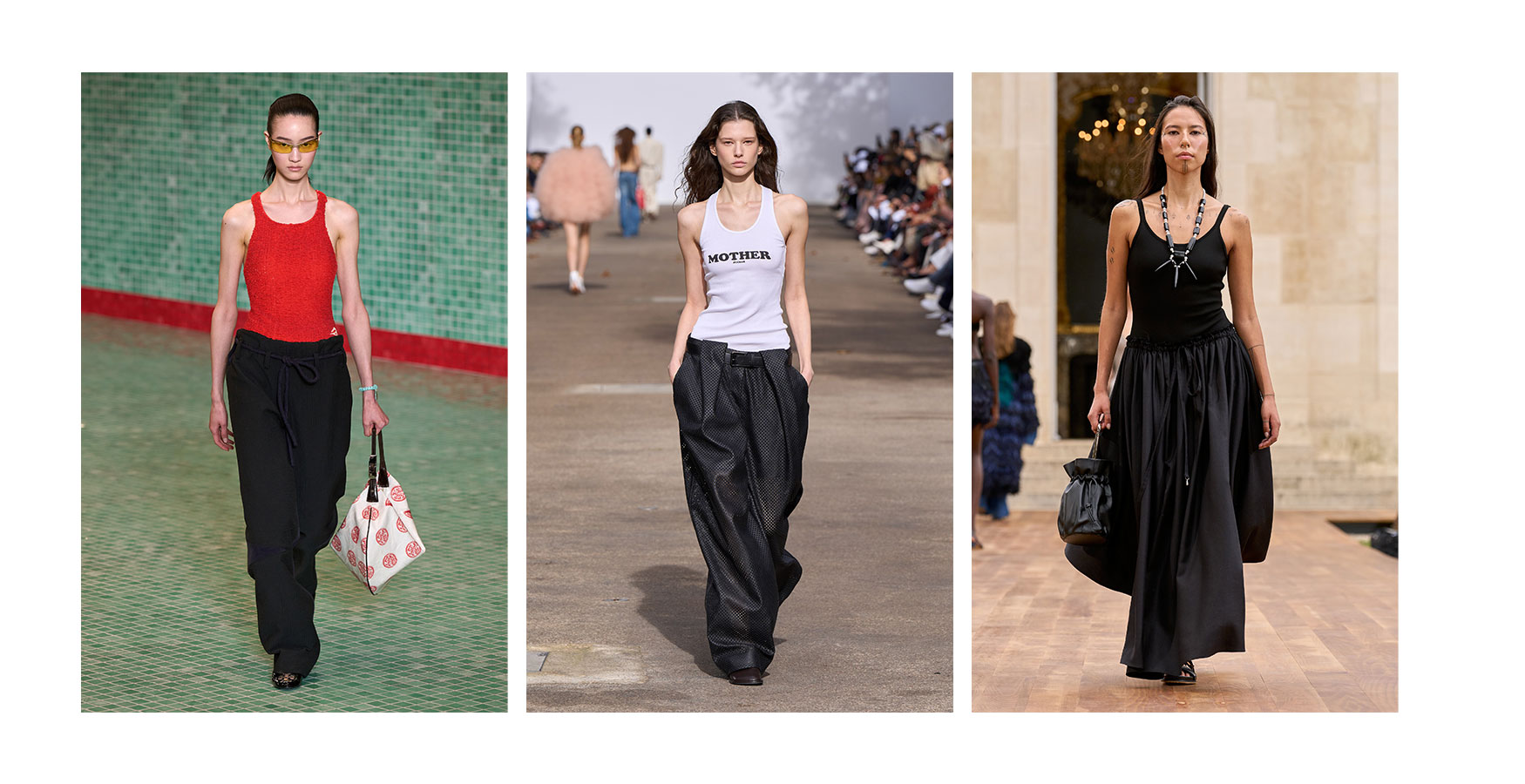 Зліва направо: Tory Burch весна-літо 2025, Stella McCartney весна-літо 2025, Gabriela Hearst весна-літо 2025
