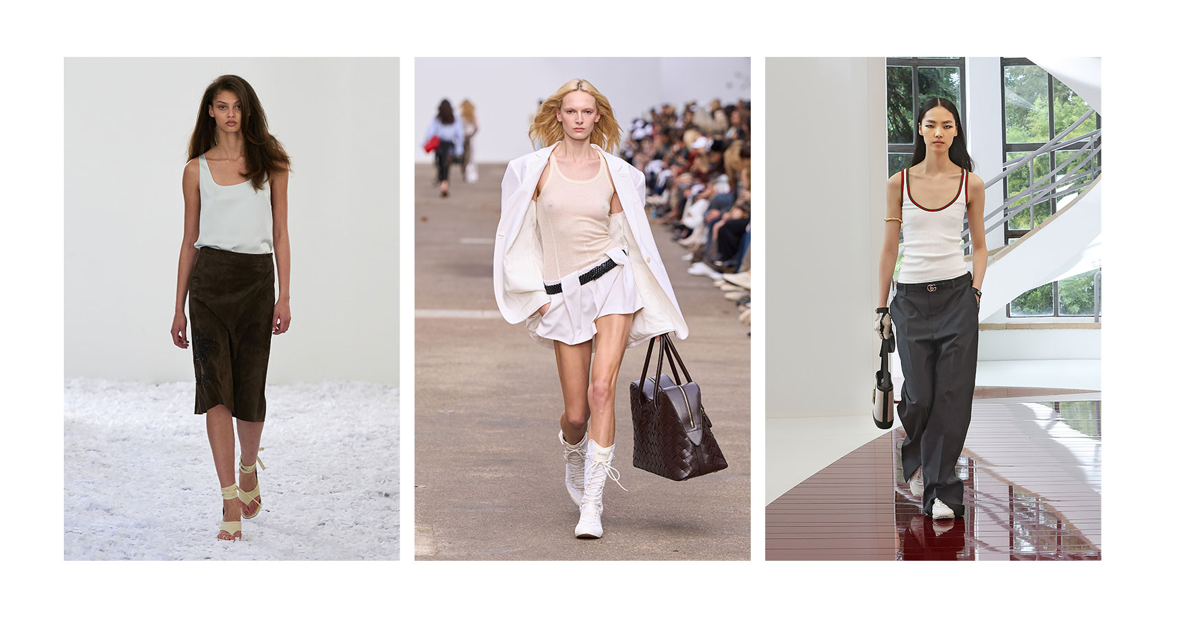 Зліва направо: 16Arlington весна-літо 2025, Stella McCartney весна-літо 2025, Gucci весна-літо 2025