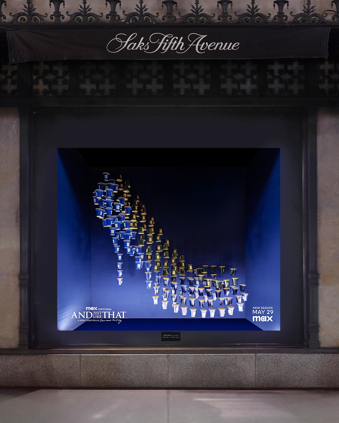 Для своїх вітрин команда Saks Fifth Avenue створила інсталяції за мотивами художників з костюмів сиквелу Моллі Роджерс та Денні Сантьяго. У вікнах будівлі можна побачити образи з колекцій Vivienne Westwood та Simone Rocha, які раніше з’являлися на Керрі Бредшоу в попередніх епізодах «І просто так».