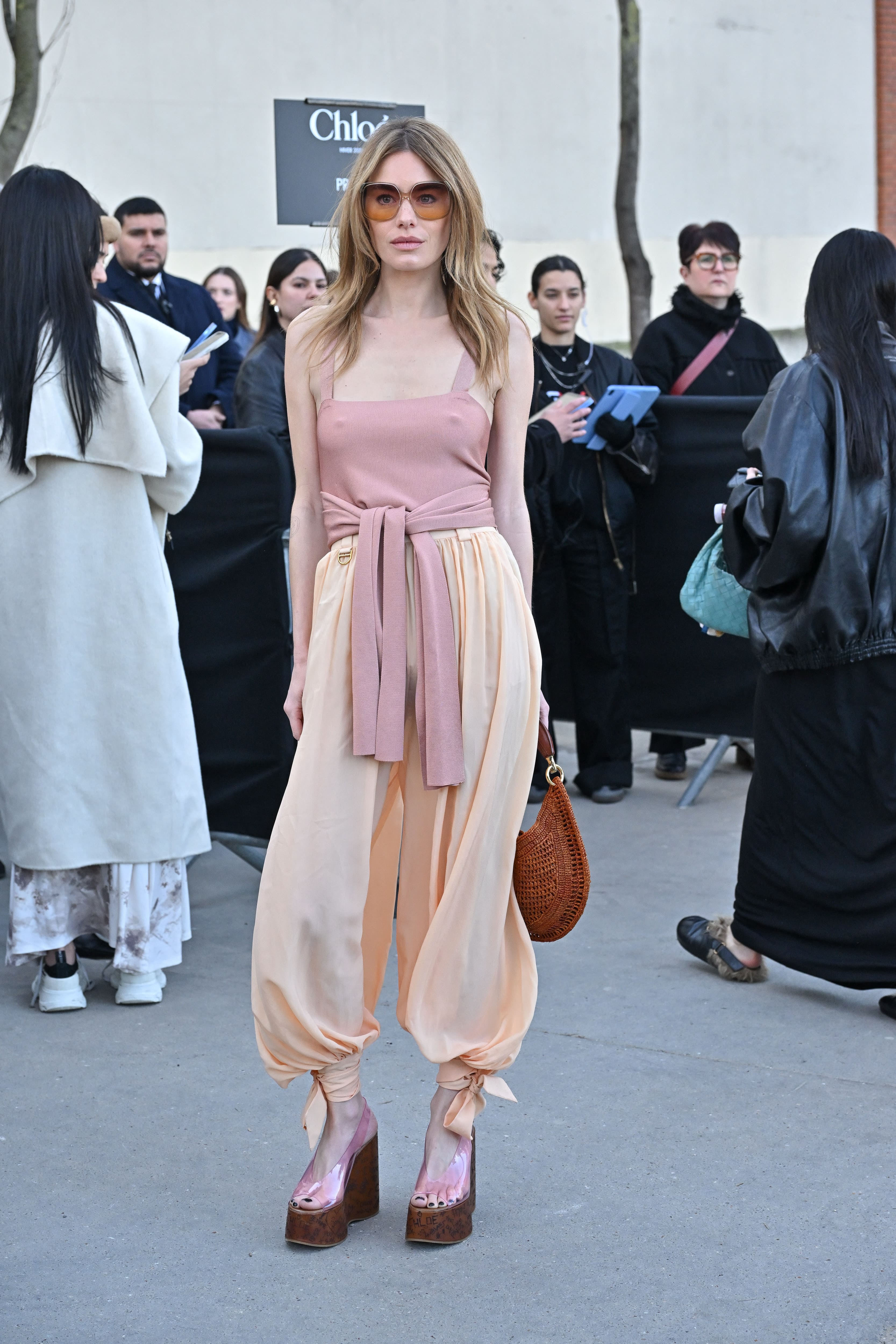 На подіумах сезону весна-літо 2025 така модель з’явилася в провідних фешн-гравців, стаючи натхненням для особистих стилізацій. У Chloé її показали в ніжному ансамблі в парі з мереживним топом на тонких бретелях й скомбіновану зі шнурованим взуттям на невисоких підборах. В Alaïa прозорі гаремні штани з декоративною баскою парували з тілесним топом-бандо й сумкою крос-боді. Зі свого боку Andreadamo зробили ставку на комбінацію з сітчастим топом на одне плече.