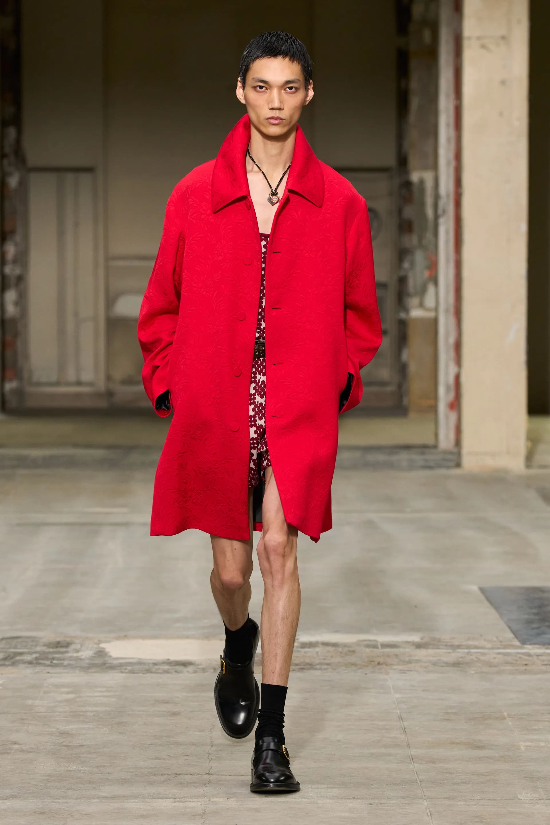 Просто прекрасний день. Саме в нього хотів занурити гостей новий креативний директор, наступник засновника Дріса ван Нотена, бельгієць Джуліан Клаузнер, обравши однойменну пісню Лу Ріда як саундтрек показу. У березні цього року дизайнер вже представив свою першу жіночу колекцію для бренду: до призначення креативним директором він працював шість років якраз із жіночою лінійкою в Dries Van Noten. Тепер, під час третього дня Тижня моди в Парижі, перед ним стояв новий виклик — дебют у чоловічому напрямі марки.