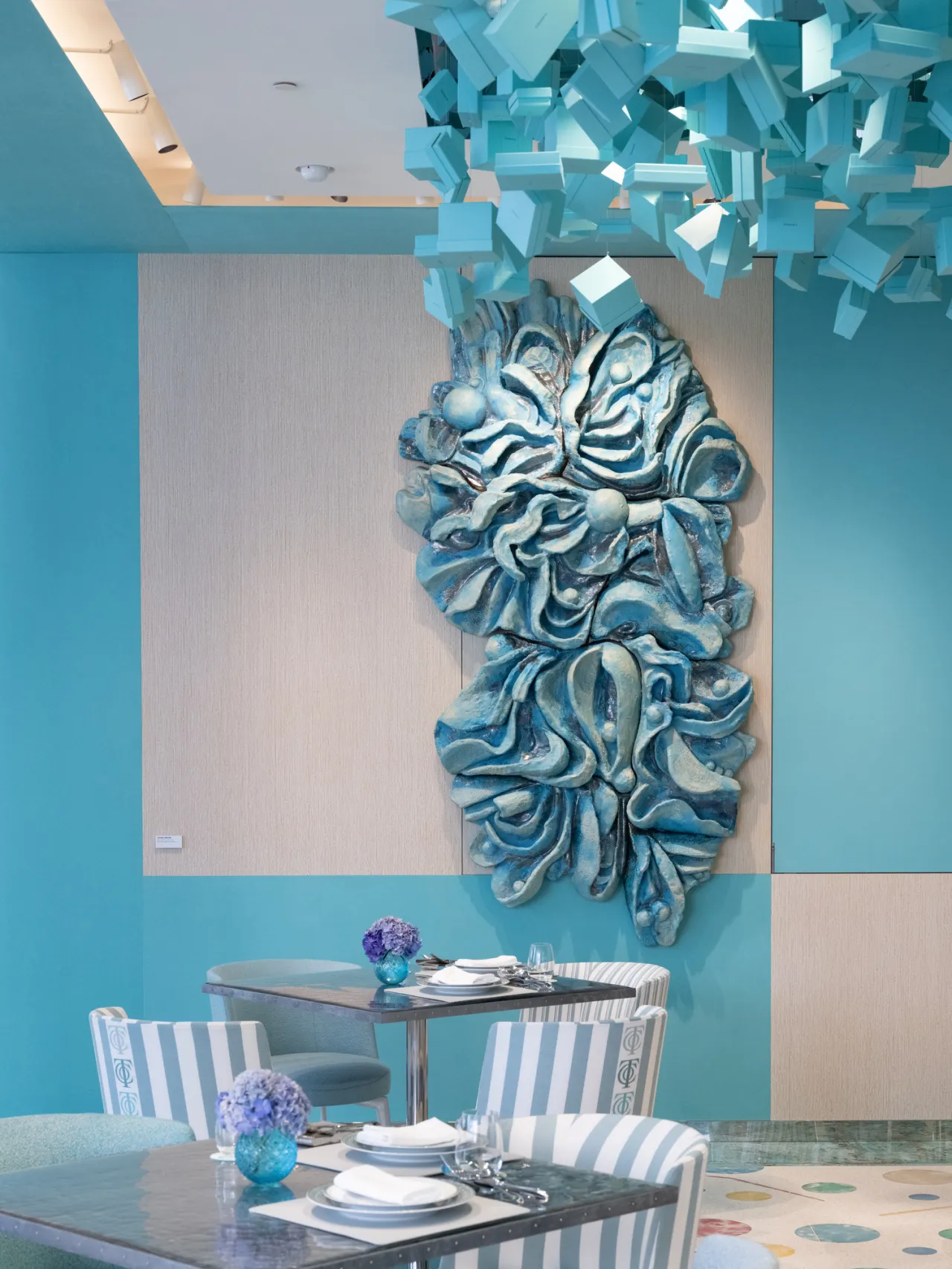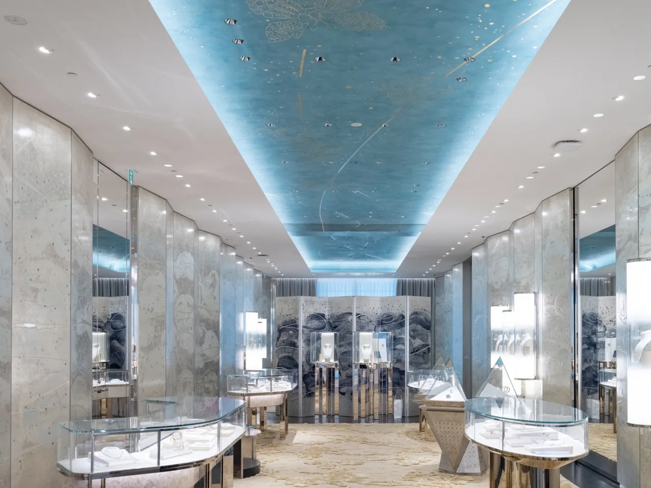 Зали бутика розташовуються від підвального рівня до третього поверху. На четвертому — перше в Японії офіційне кафе Blue Box, а на верхньому поверсі — VIP-зона, доступна лише за запрошеннями.