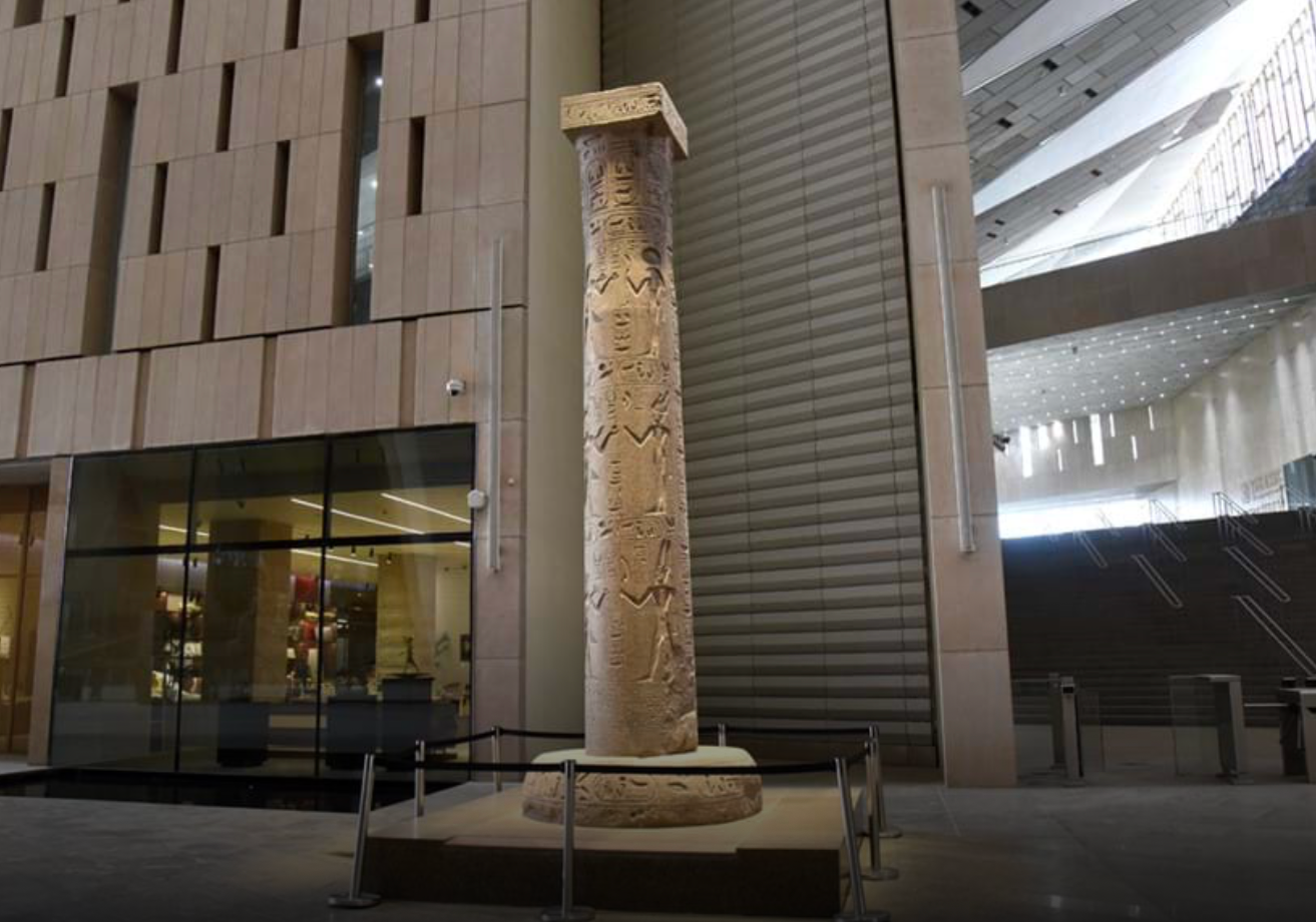 Площа музею — пів мільйона квадратних метрів, фасад прикрашений ієрогліфами та напівпрозорим алебастром, що мерехтить під сонцем, немов давній оберіг.