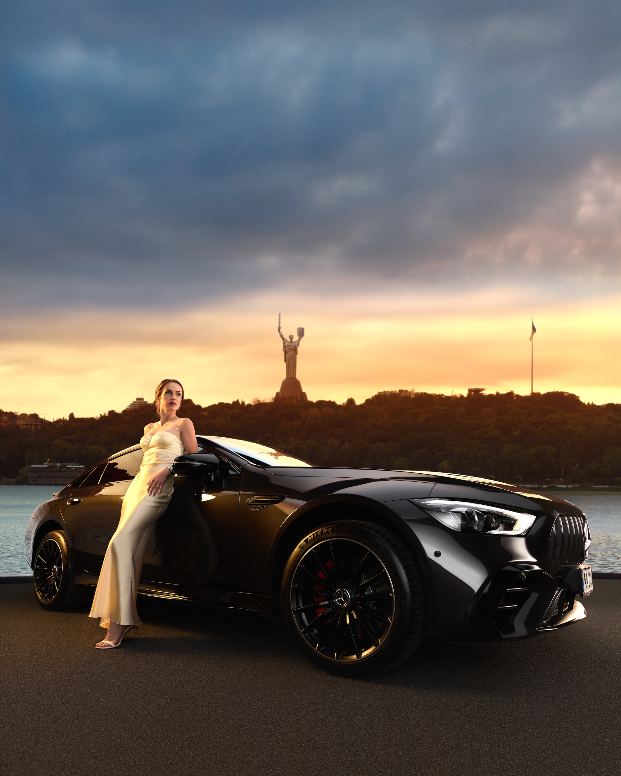 У відео символічно переплітаються два світи: тенісний корт та сучасне місто. Спортивний Mercedes-AMG GT 53 4MATIC+ рухається вулицями Києва, долаючи мокрий асфальт та динамічні повороти – як метафору викликів, з якими сьогодні стикається наша країна та українці.