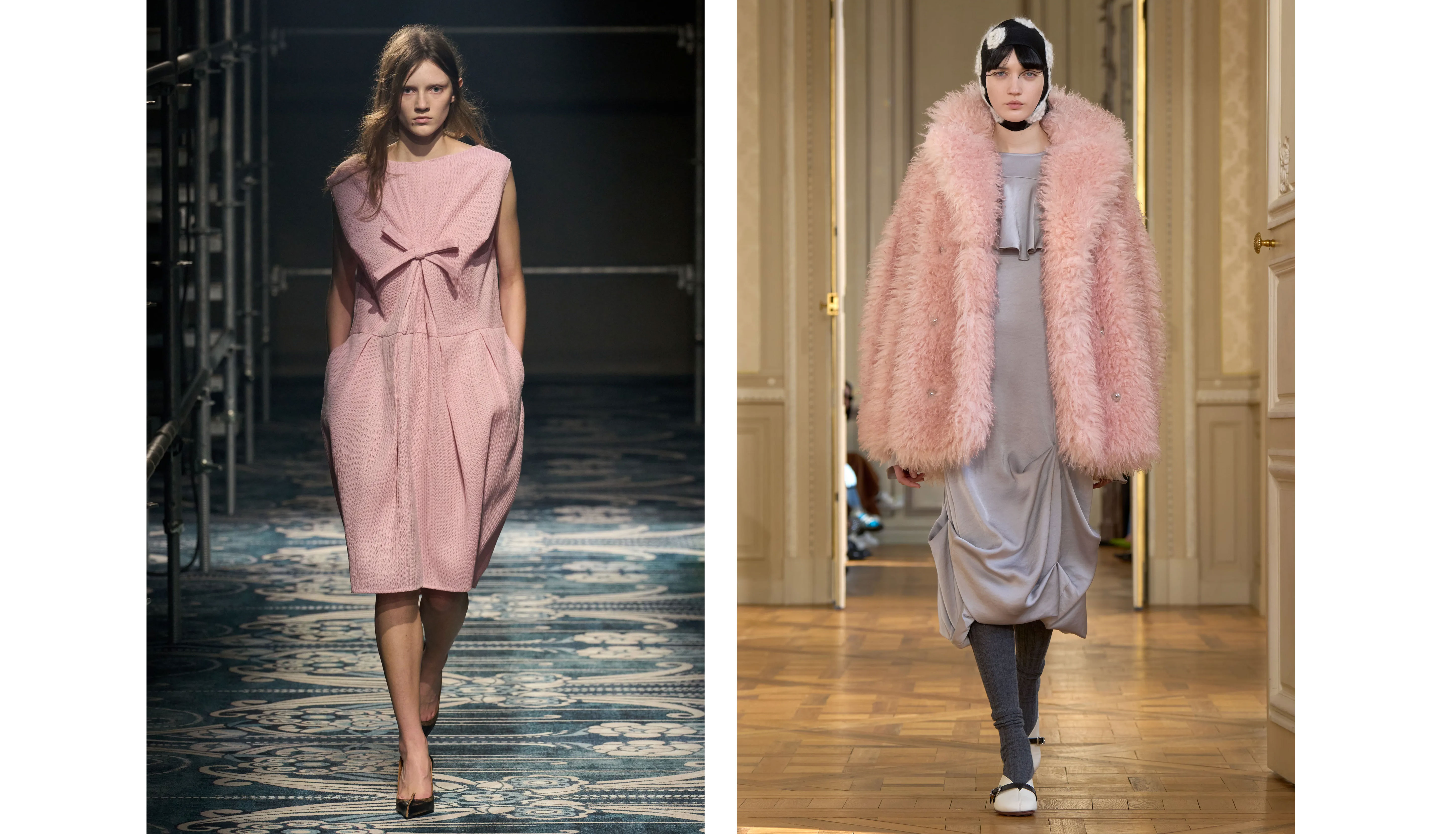 Пастельні кольори, властиві для колекцій spring-summer, у прохолодну пору року набувають особливого шарму. Найтрендовіший серед них цього зимового сезону — baby pink. Так, Prada надихають нас на придбання жіночної рожевої сукні, а Ganni демонструють одне з найулюбленіших наших поєднань — рожевий + сірий.