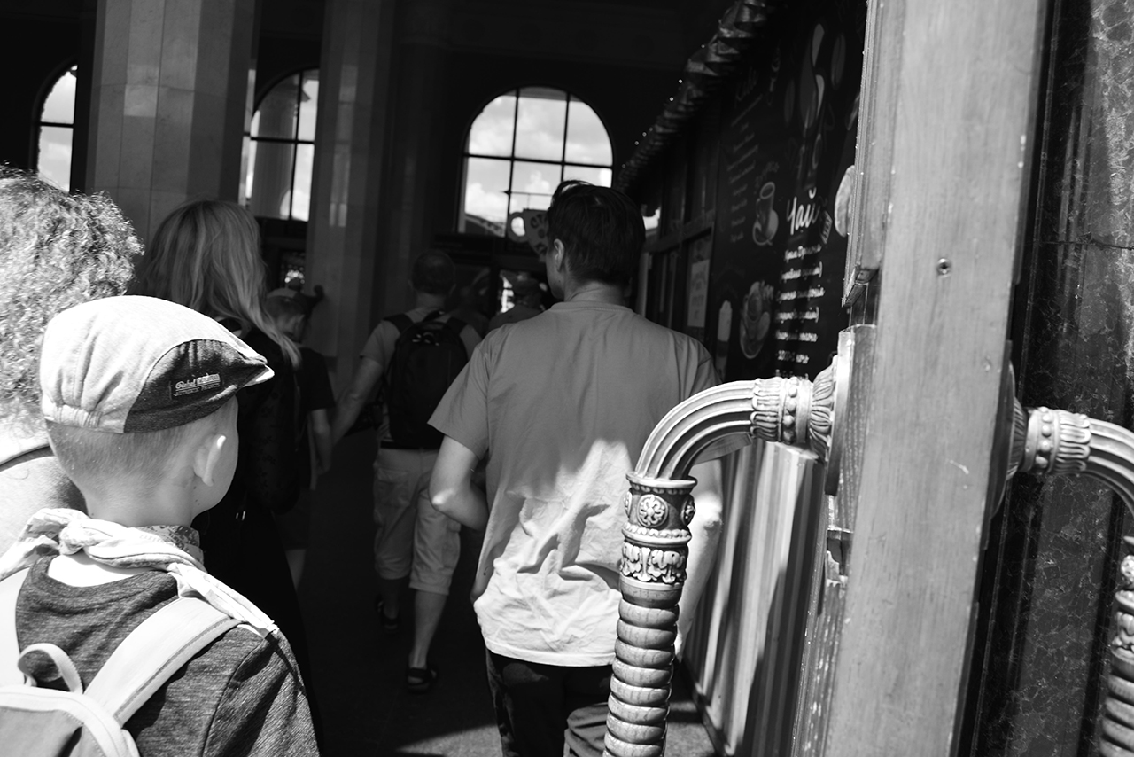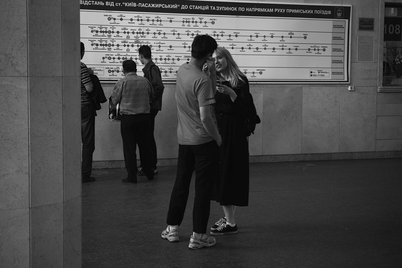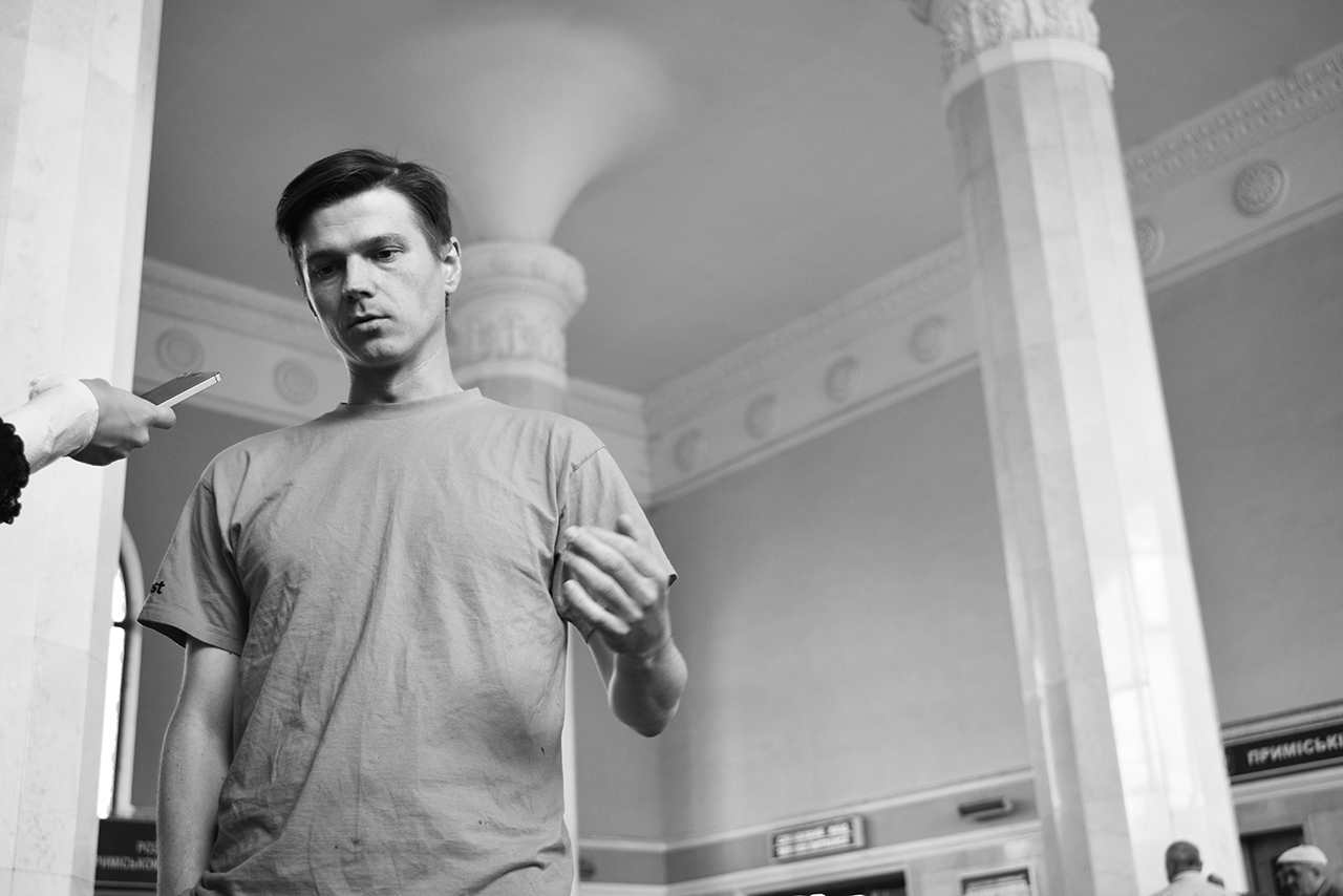 Я іноді просто слухаю оголошення електричок у різні напрямки – ці назви відкривають мені якісь горизонти. Хочеться поїхати скрізь, тому я нікуди не їду, а просто залишаю за собою таку можливість: чисту потенцію. Люблю почитати розклад, їх я читаю як поеми. Центральний вокзал – перероблений конструктивізм, він виглядає досить провінційно, як в кожному місті кожен радянський вокзал від Чопа до Владивостока. З одної сторони, тут є пишність з колонами, – показує Вова на білетні каси з високими білими колонами, куди ми зайшли почитати розклад, – а з іншої – сірість та занедбаність. Дуже подобається.