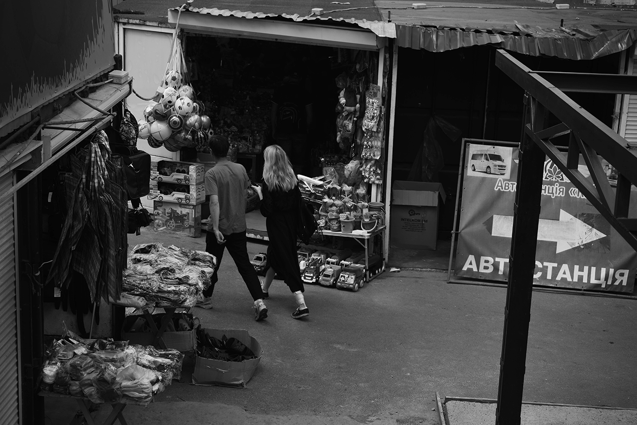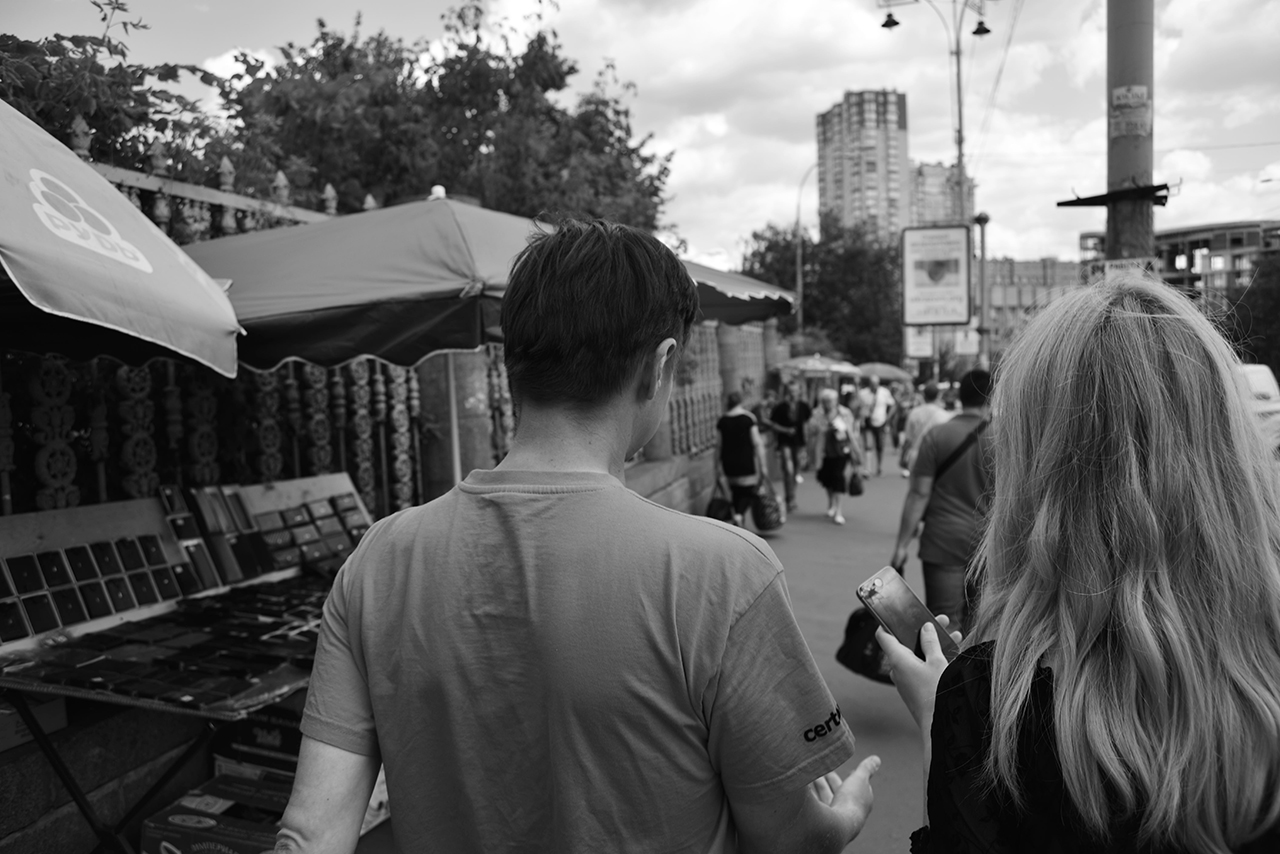 З художником Вовою Воротньовим ми зустрілися біля центрального залізничного вокзалу Києва, звідки вирішили піти по трьох місцях, що важливі для Вови, в першу чергу у контексті його акції ЗА/С ХІД. Обраними локаціями для нашої прогулянки стали зали білетних кас вокзалу, бар біля секонд-хенду, де возвеличуються неонові букви з написом Samsung, а також річка Либідь.