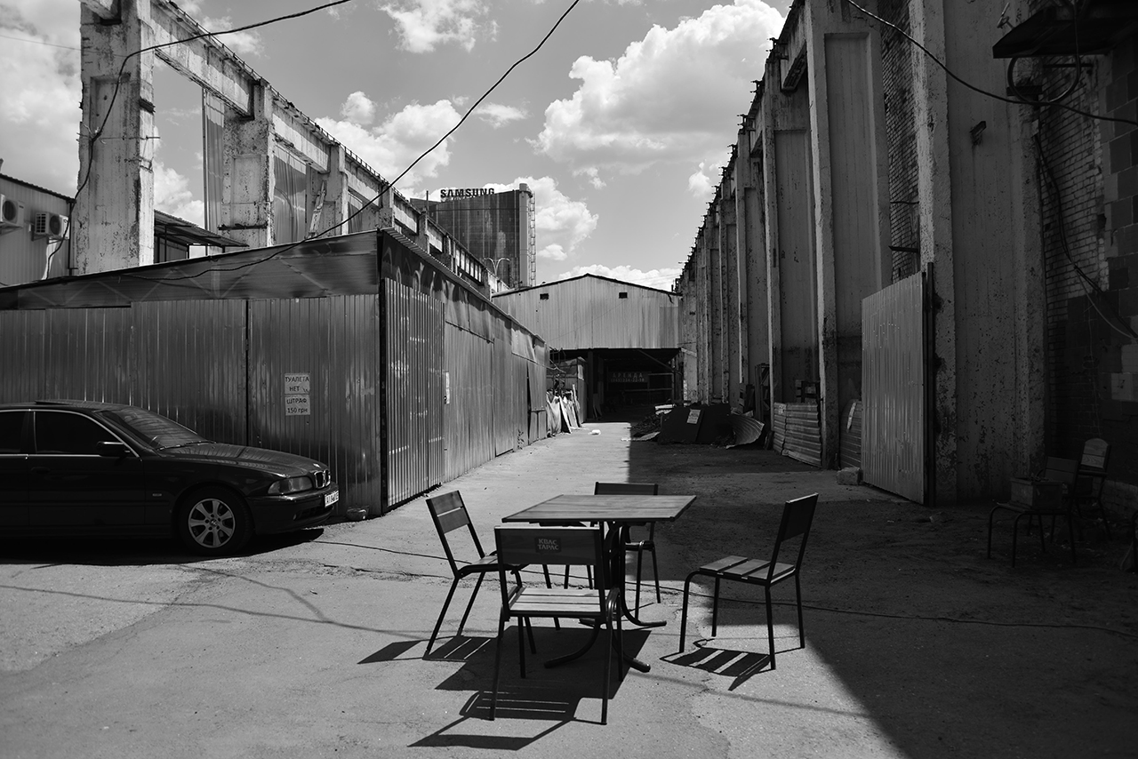 – Мій бекграунд – графіті, вандалізм. Я досліджував місто, бродив і мав мету, як виправдання, – знайти місце, де можна щось намалювати, зробити інтервенцію. Коли перестав займатися графіті, то залишився мені тільки вид міської хореографії – безцільне бродіння по місту. Місто – книга, ти коли ходиш, то читаєш оточення, знаки. Дивіться, там вище уже Samsung, «цивілізація», – тут же проілюстрував сказане Вова, вказуючи рукою на величезні літери.