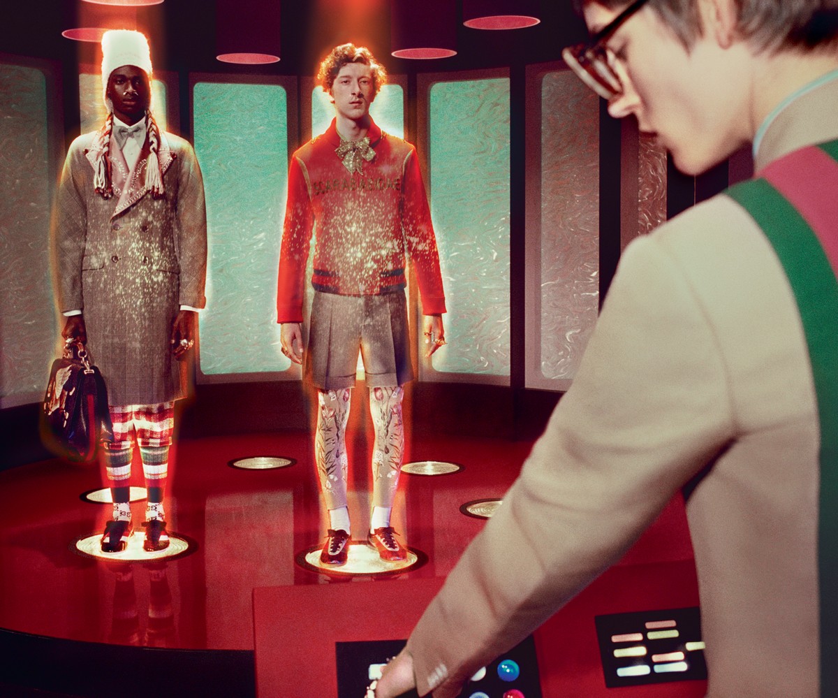 Gucci представили рекламную кампанию осенне-зимней коллекции 2018, на создание которой креативного директора дома Алессандро Микеле вдохновили популярные science-fiction-сериалы и фильмы 50-60-х годов. Некоторые сцены для ролика Gucci позаимствованы из легендарных космических картин «Звездный путь», «Звездные войны» и «Тварь из Чёрной Лагуны». Фотографом кампании стал Глен Лачфорд.