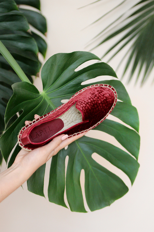 Благородный блеск бархата с тиснением, повторяющим рельеф крокодильей кожи, приковывает взгляды, а подошва из натурального джута и спортивная текстильная подкладка обеспечат максимальный комфорт. Что еще нужно для прогулок теплыми летними вечерами.