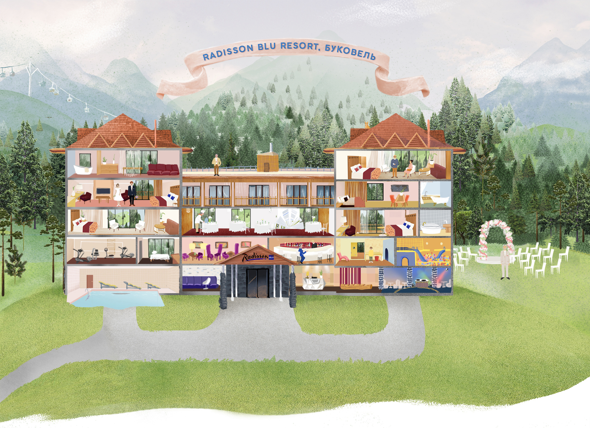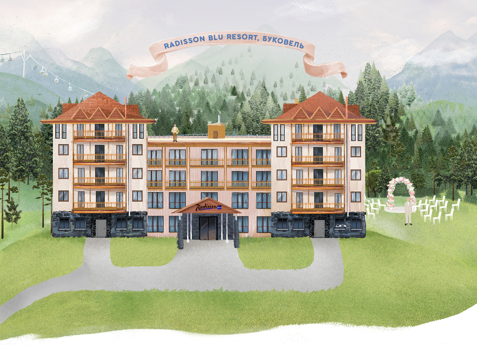 Этому господину было что обсудить с родителями невесты: во время подготовки поездки он трясся буквально как осиновый лист, наслушавшись пугающих историй об украинских реалиях (включающих, например, сало как единственное, что едят украинцы и последствия Чернобыля). Тем большим контрастом оказался для него Radisson Blu Resort Буковель, в который он приехал на свадьбу сына лучших друзей: изысканные номера, отличная кухня и удивительная природа. А весь персонал отеля впечатлил его идеальным английским и готовностью выполнить любое его пожелание: например, подать чай с молоком и сконами ровно в 17:00 или каждое утро ставить в номере 4 букета свежих цветов.