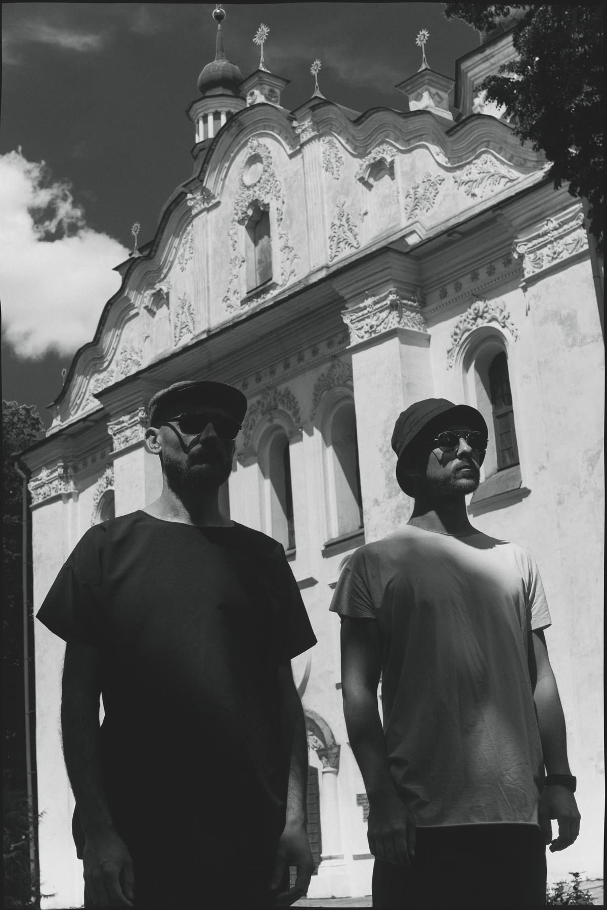 С Антоном Дегтяревым и Владимиром Бабушкиным из группы Ptakh Jung мы встречаемся у ступеней, ведущих к Кирилловской церкви – старейшему киевскому храму, возводившемуся еще в XII веке. На день нашей встречи у нас большие планы: ребята запланировали показать редакции L’Officiel места, где они мечтают отыграть концерты, – и заодно, как шутит Антон, провести небольшую экскурсию по городу. На нашем маршруте 4 пункта - после церкви мы отправимся к зданию биржи на Контрактовой, затем - к знаменитой "Тарелке" на Лыбедской, а после - к Николаевскому костелу. Оттуда Антон и Вова, рассказав нам о том, почему именно эти локации интересуют их в качестве концертных площадок, поедут на Труханов остров - играть концерт.