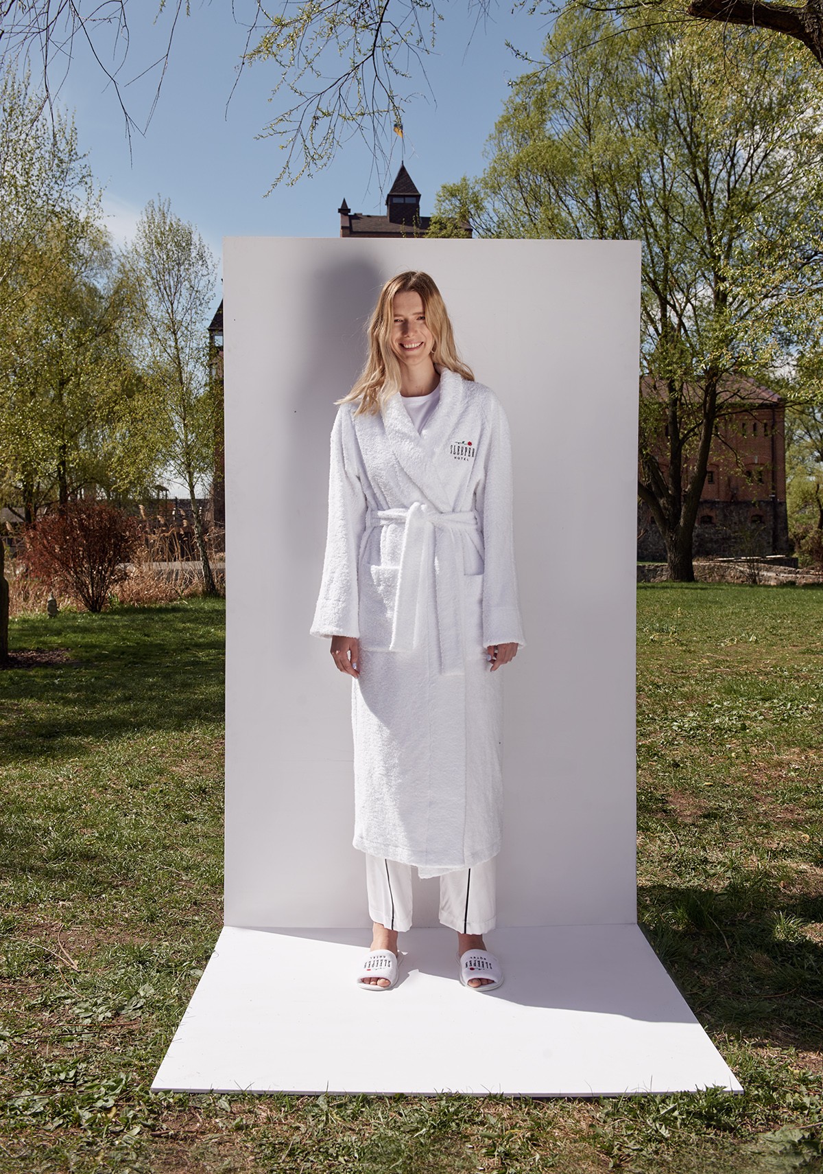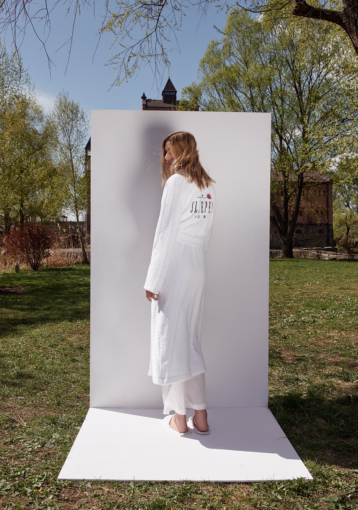 Украинский бренд Sleeper представил новую коллекцию, в которую вошли не только привычные для бренда халаты и пижамы, но и гостиничные принадлежности: тапочки, футболка и банный халат с логотипом воображаемого отеля. «Мы обожаем отели. У больших отелей есть собственные мифы и легенды. Переступив порог номера и надев халат, сразу становишься частью легендарных событий. И на этот раз мы придумали воображаемый идеальный отель», — объясняют концепцию коллекции соосновательницы Sleeper Катя Зубарева и Ася Вареца. Зубарева и Вареца также добавляют, что их целью было продемонстрировать образцовые примеры гостиничных халатов и пижам, – в процессе создания таковых девушки заодно придумали несколько необычных и самодостаточных вещей.