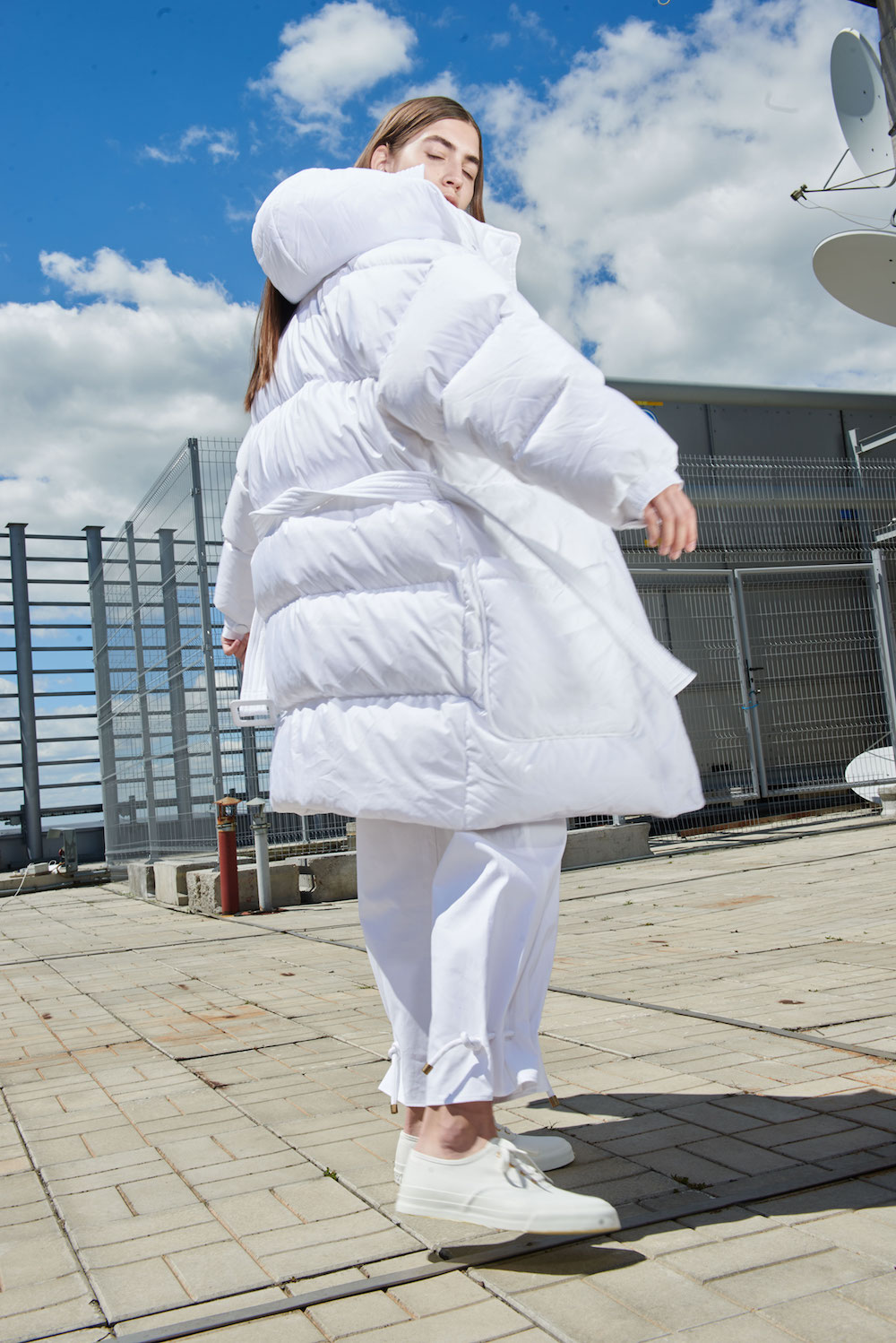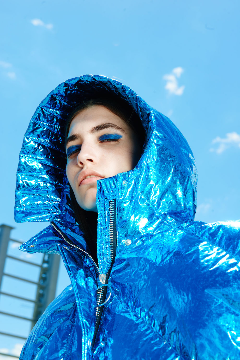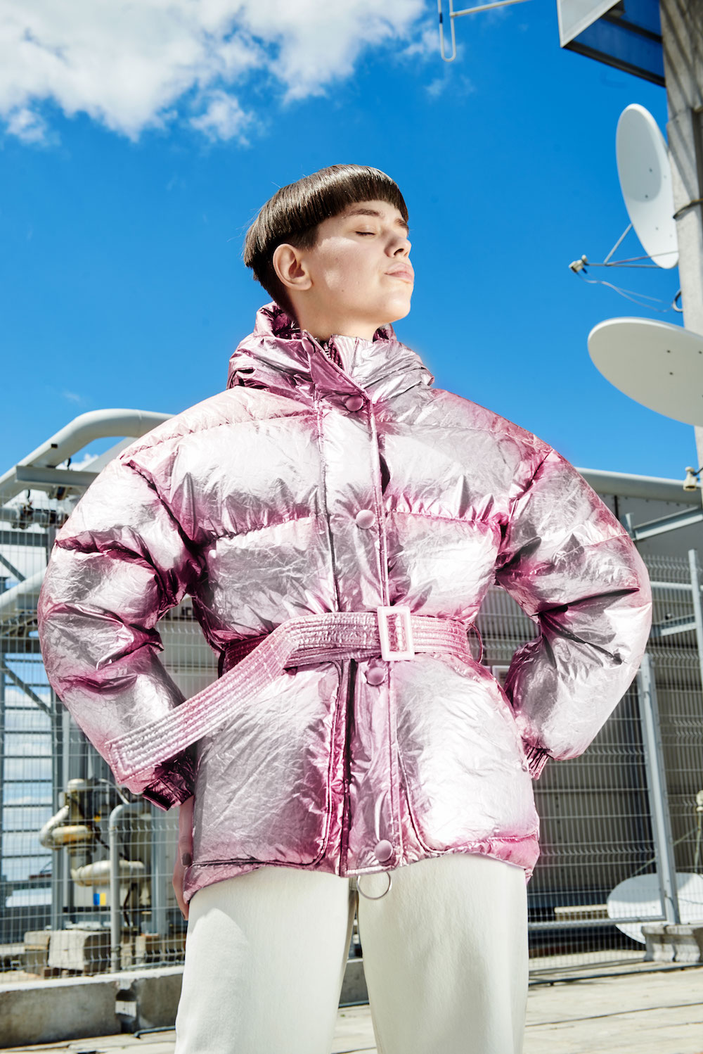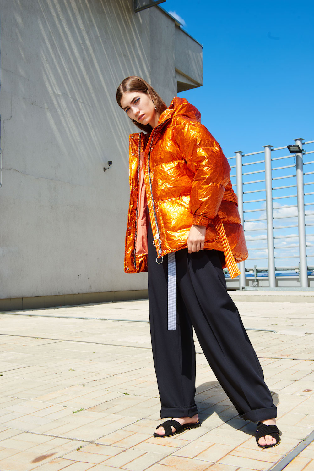 “В качестве основы мы взяли металлизированную ткань, которая специально для нас была разработана на итальянской фабрике, — рассказывает основатель бренда Дмитрий Евенко. — Ткани с подобным эффектом, которая имела бы приятную пластику, держала бы пух и была водостойкой, не существовало".
