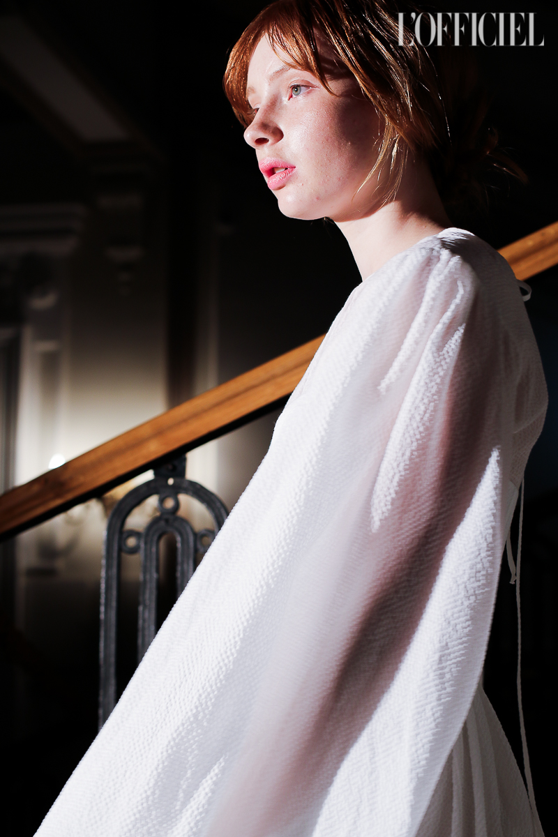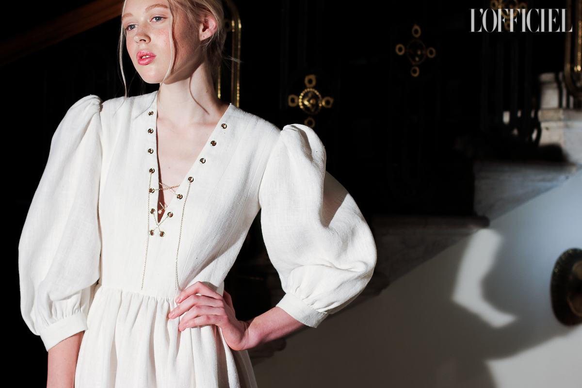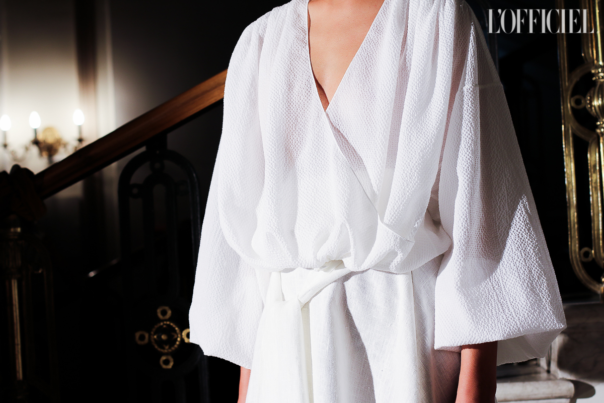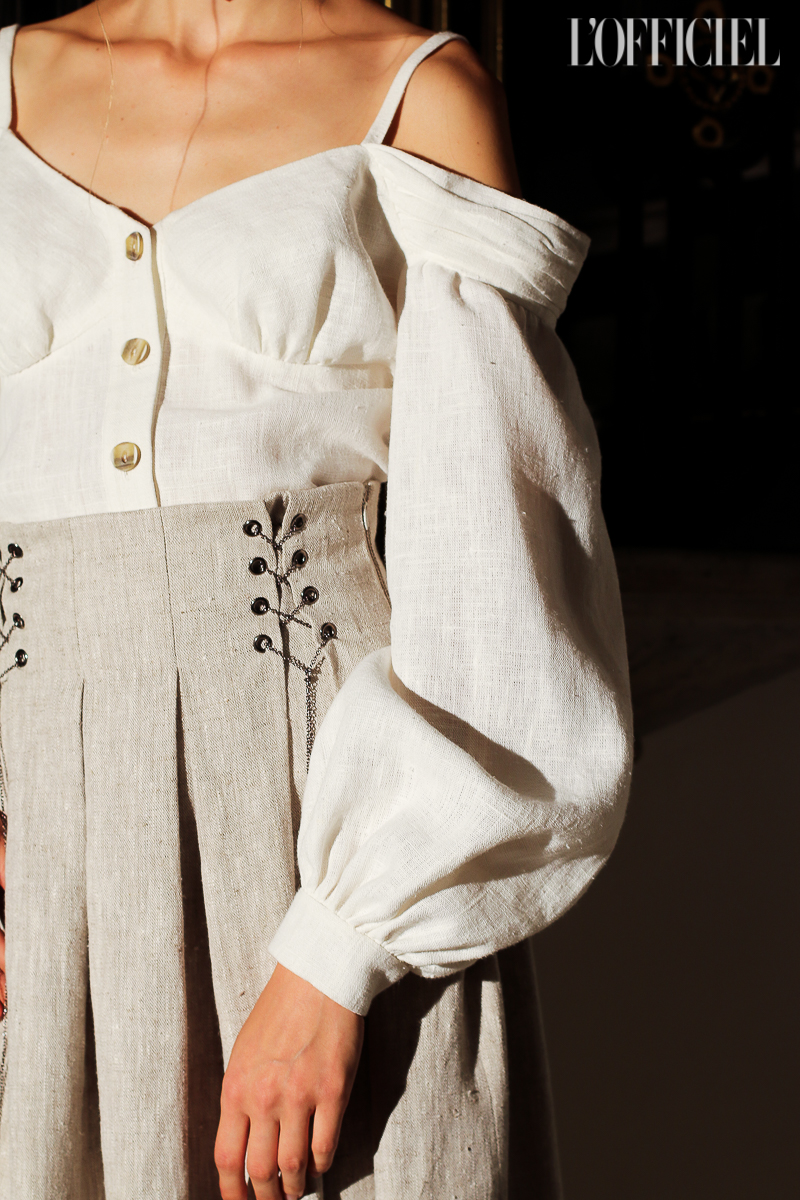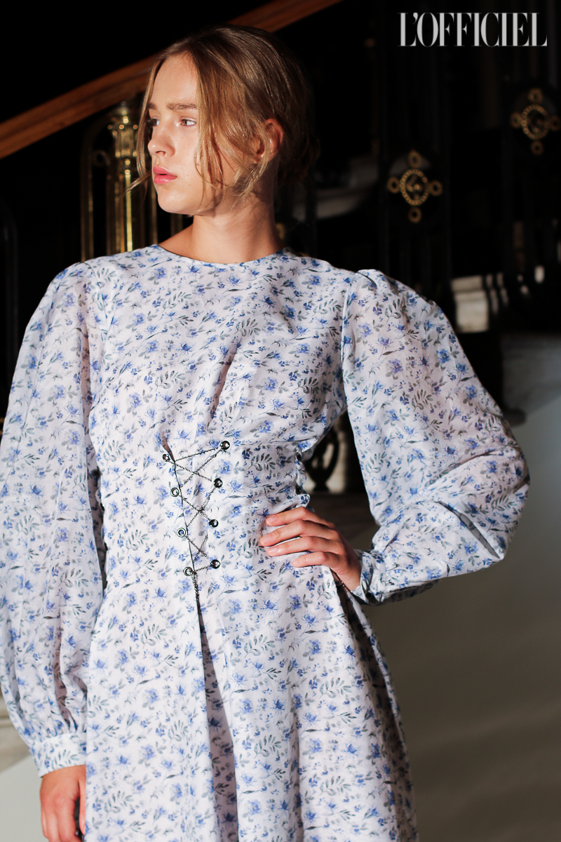 Несмотря на смену темы, в коллекции легко узнать почерк Виктории Баланюк: она привнесла в нее уже привычные для FLOW the Label детали: обнаженные плечи, летящие платья, обязательный авторский принт, длина миди и общее расслабленное, женственное настроение. Присутствует даже любимая Викторией Франция: уже второй сезон подряд FLOW The Label представляют ювелирную коллекцию, и в этот раз киевский мастер Сергей Жернов взял за основу старинную французскую монету - обычай носить украшения из монет присущ древнеримским девушкам, так что эта история тоже укладывается в общую канву коллекции. А чтобы она не вышла уж слишком девичьей, нежность тканей и драпировок Баланюк оттеняет металлическими люверсами. Впервые за долгое время дизайнер отошла от уже вдоль и поперек изученной ею территории, не потеряв при этом наработанной брендом ДНК, и нам кажется, это пойдет FLOW The Label только на пользу.