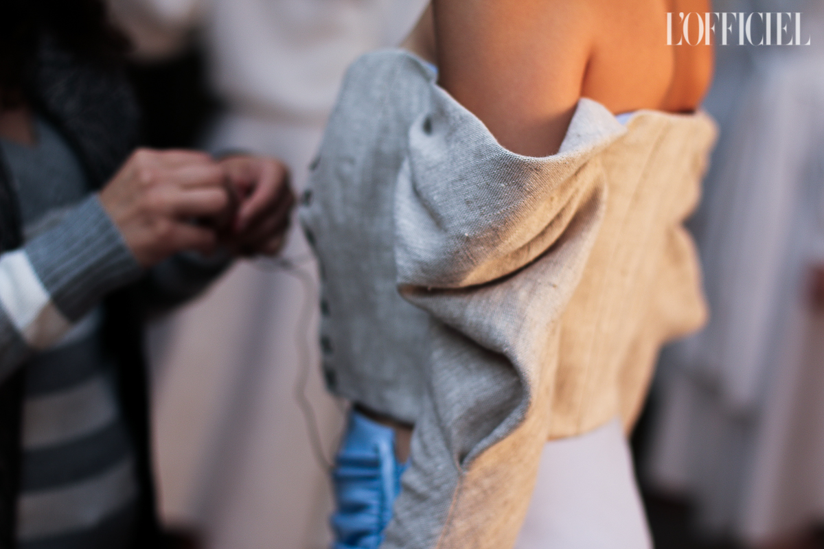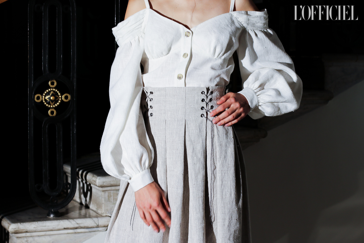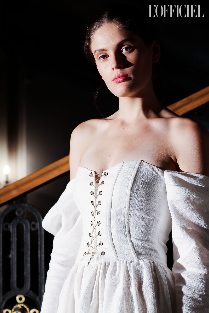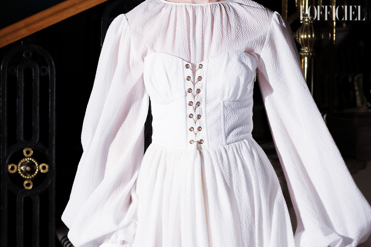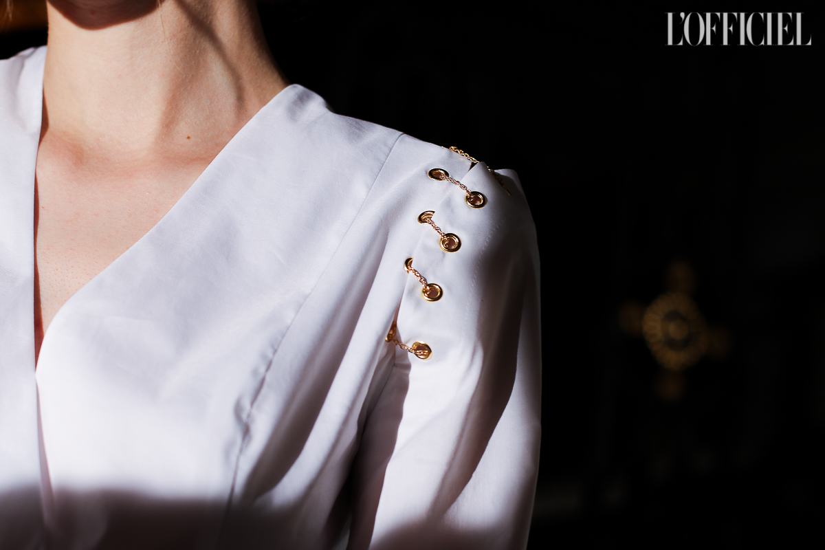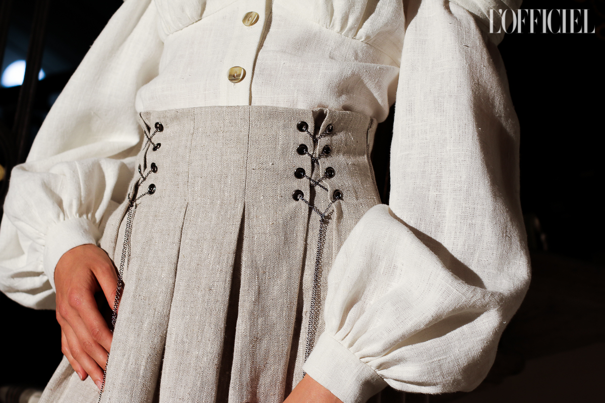 Несмотря на смену темы, в коллекции легко узнать почерк Виктории Баланюк: она привнесла в нее уже привычные для FLOW the Label детали: обнаженные плечи, летящие платья, обязательный авторский принт, длина миди и общее расслабленное, женственное настроение. Присутствует даже любимая Викторией Франция: уже второй сезон подряд FLOW The Label представляют ювелирную коллекцию, и в этот раз киевский мастер Сергей Жернов взял за основу старинную французскую монету - обычай носить украшения из монет присущ древнеримским девушкам, так что эта история тоже укладывается в общую канву коллекции. А чтобы она не вышла уж слишком девичьей, нежность тканей и драпировок Баланюк оттеняет металлическими люверсами. Впервые за долгое время дизайнер отошла от уже вдоль и поперек изученной ею территории, не потеряв при этом наработанной брендом ДНК, и нам кажется, это пойдет FLOW The Label только на пользу.