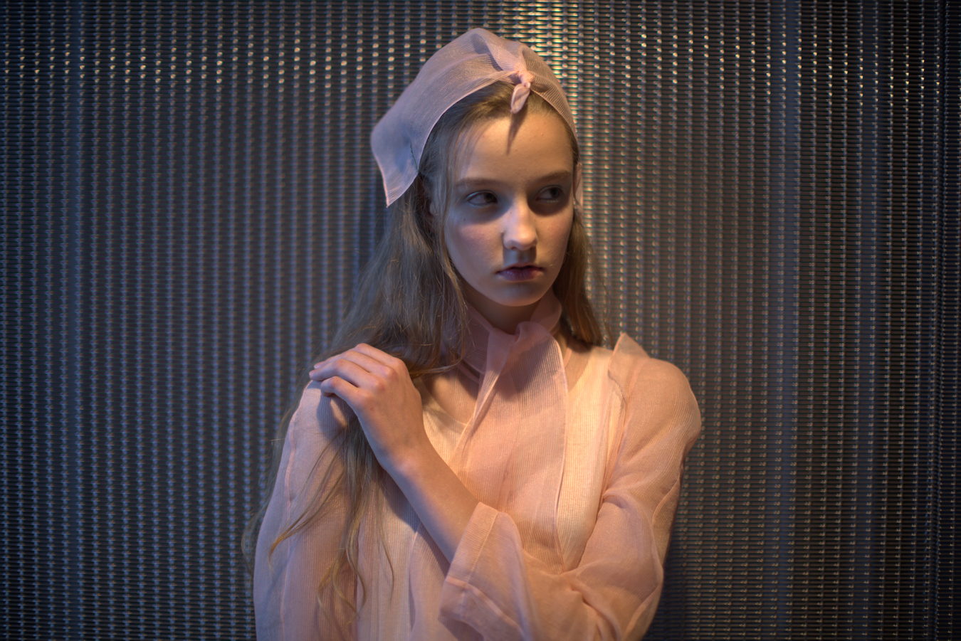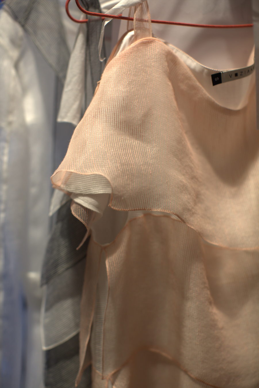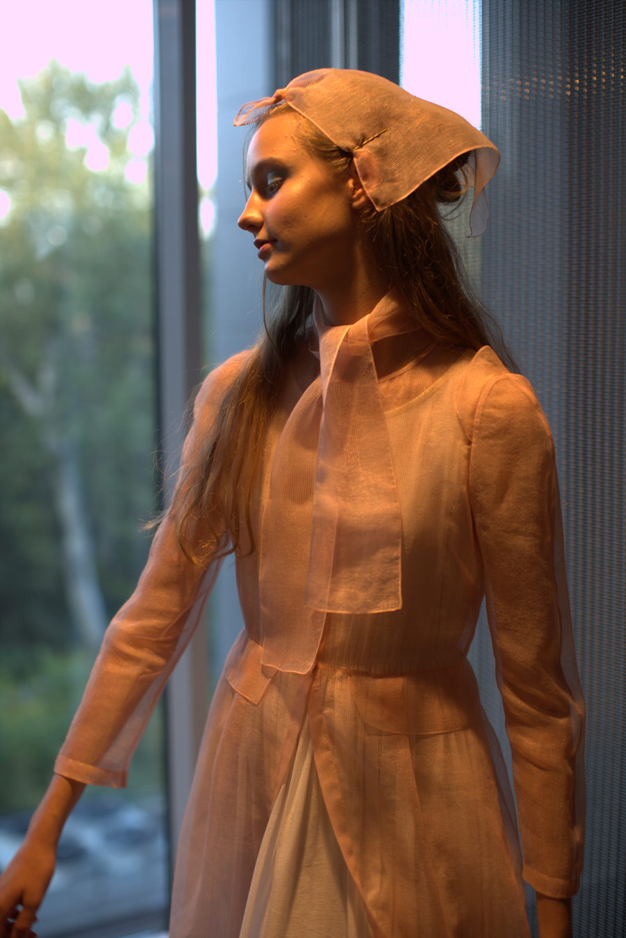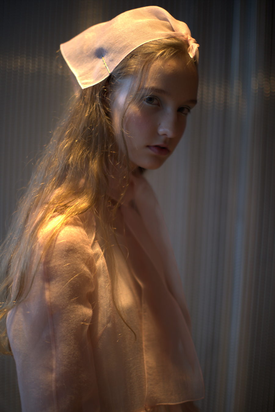 Девушка Возианова в следующем летнем сезоне балансирует между длинной миди и короткими платьями из прозрачной органзы, а также строгими, минималистичными силуэтами и многослойными образами из струящейся ткани. Знаковыми аксессуарами коллекции стали чепчики и купальные шапочки, а украшениями - повязки на глаза из жемчуга. Основные цвета коллекции: пудрово-розовый, черный, белый, бежевый, а основные ткани - органза, хлопок и шелк.