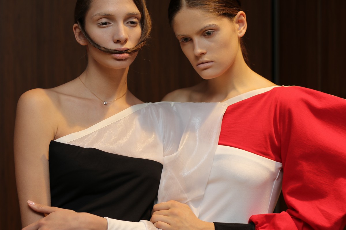 В этом сезоне GIBSH предлагает нам обтягивающие платья в широкую полоску с открытым плечом, свободные минималистичные топы, широкие брюки с высокой талией и гольфы. В цветовой гамме Дмитрий возвращает нас к базовым цветам: коричневый, белый, черный, красный и синий. Наивности больше нет, а есть GIBSH", – таким лозунгом в этом сезоне вооружился Дмитрий Гибшман.