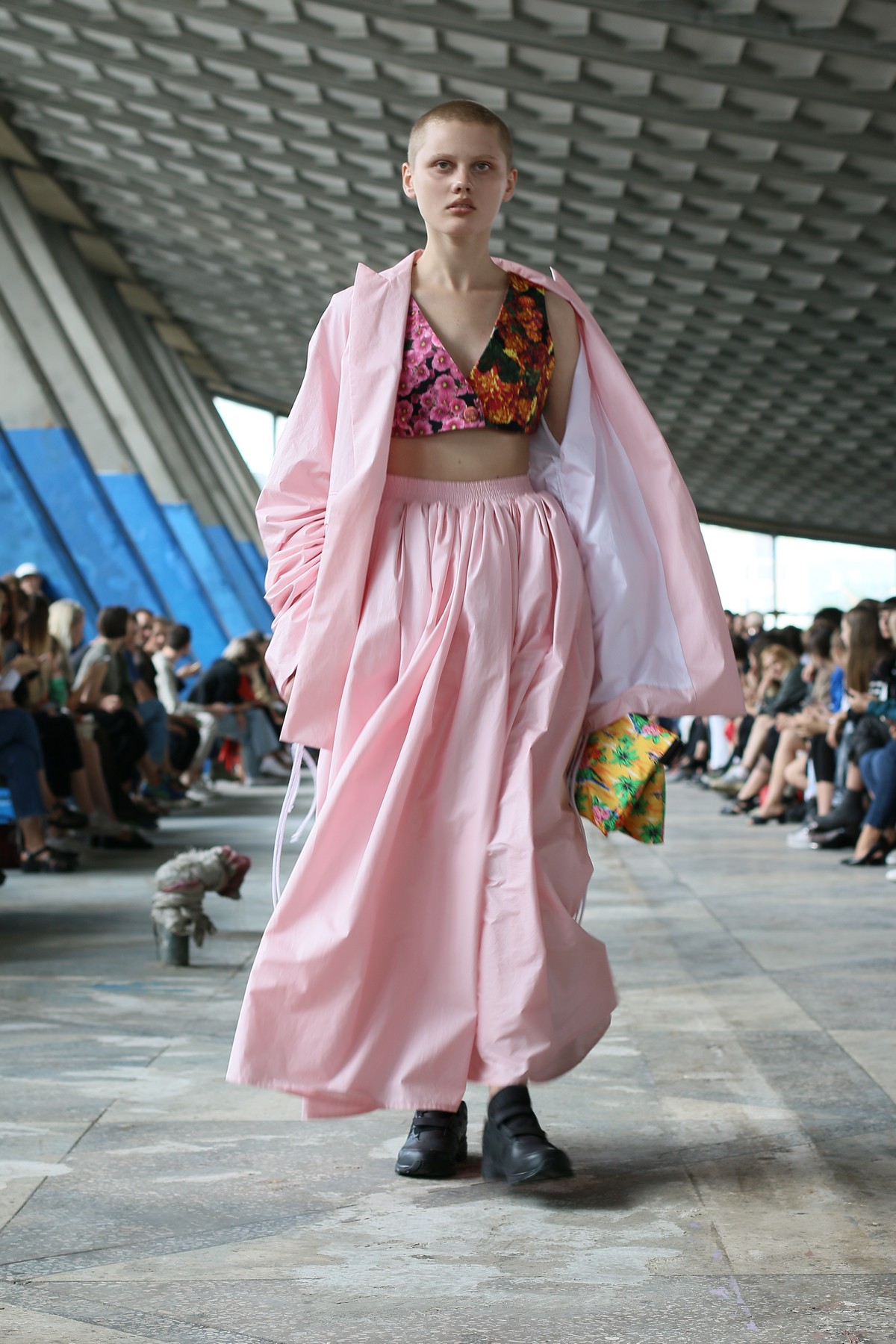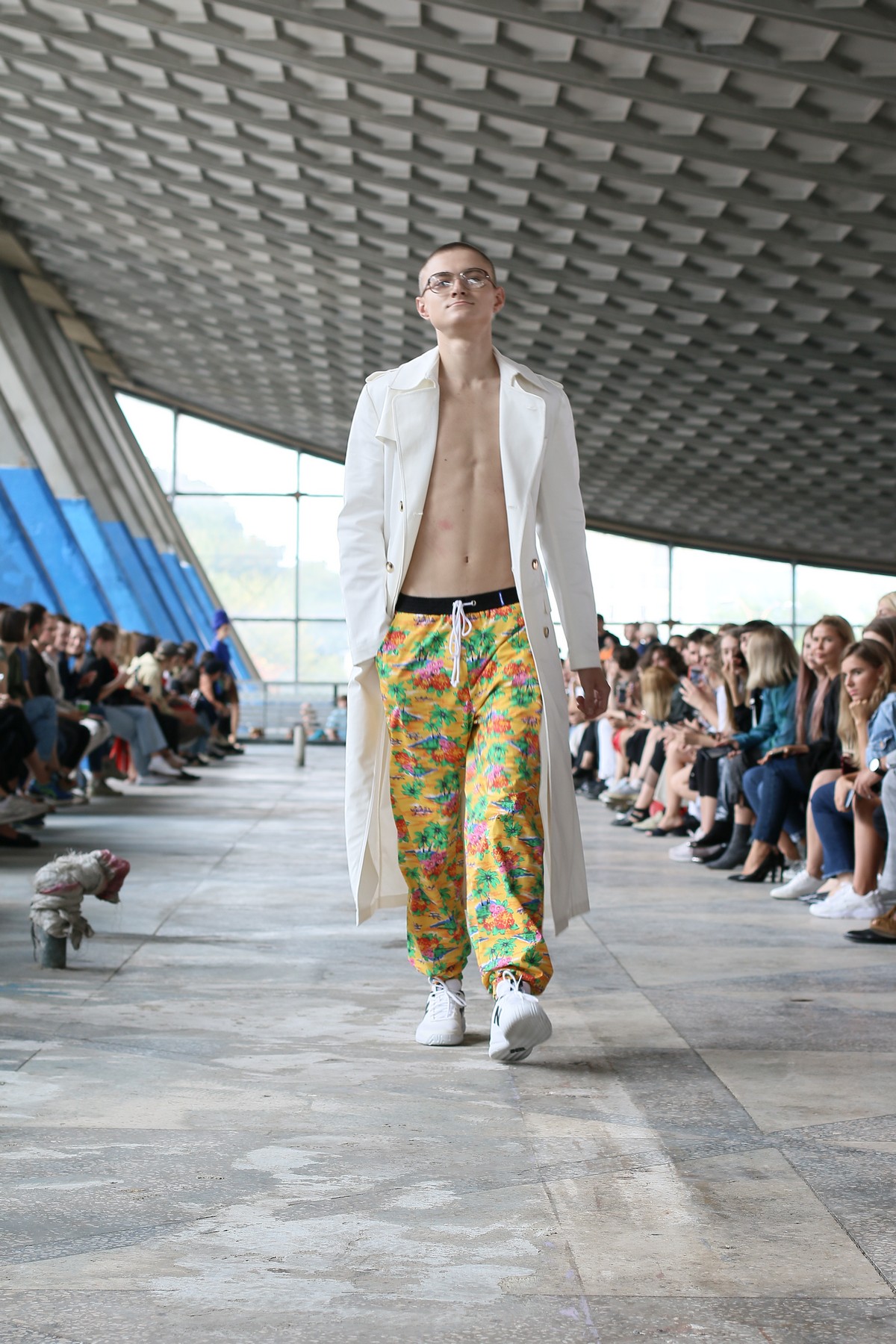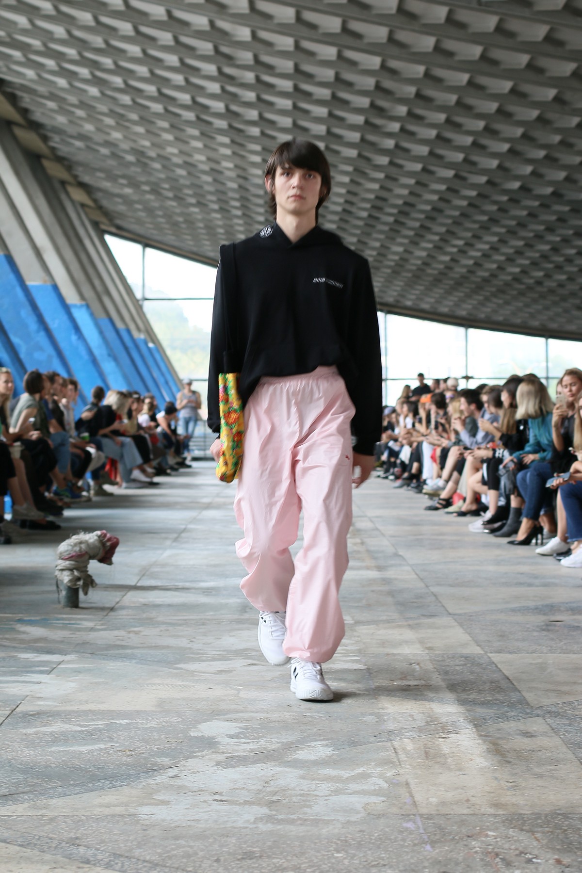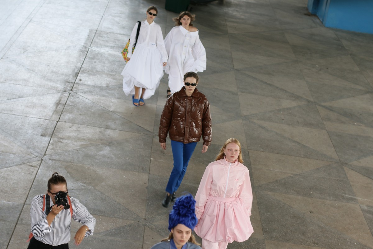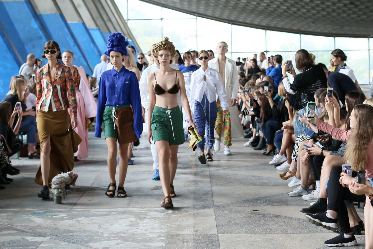 Главными цветами коллекции стали розовый, уже традиционный для бренда синий, черный, коричневый, зеленый и желтый. Отдельно стоит отметить принты, на которые Белинский в этом сезоне особенно щедр, а также реглан, где дизайнер представил совместную "коллаборацию" с художником Вовой Воротнёвым. Для этого Белинский и Воротнёв просто поменялись фамилиями. Так они иронизируют на тему мирового модного сотрудничества между дизайнерами.