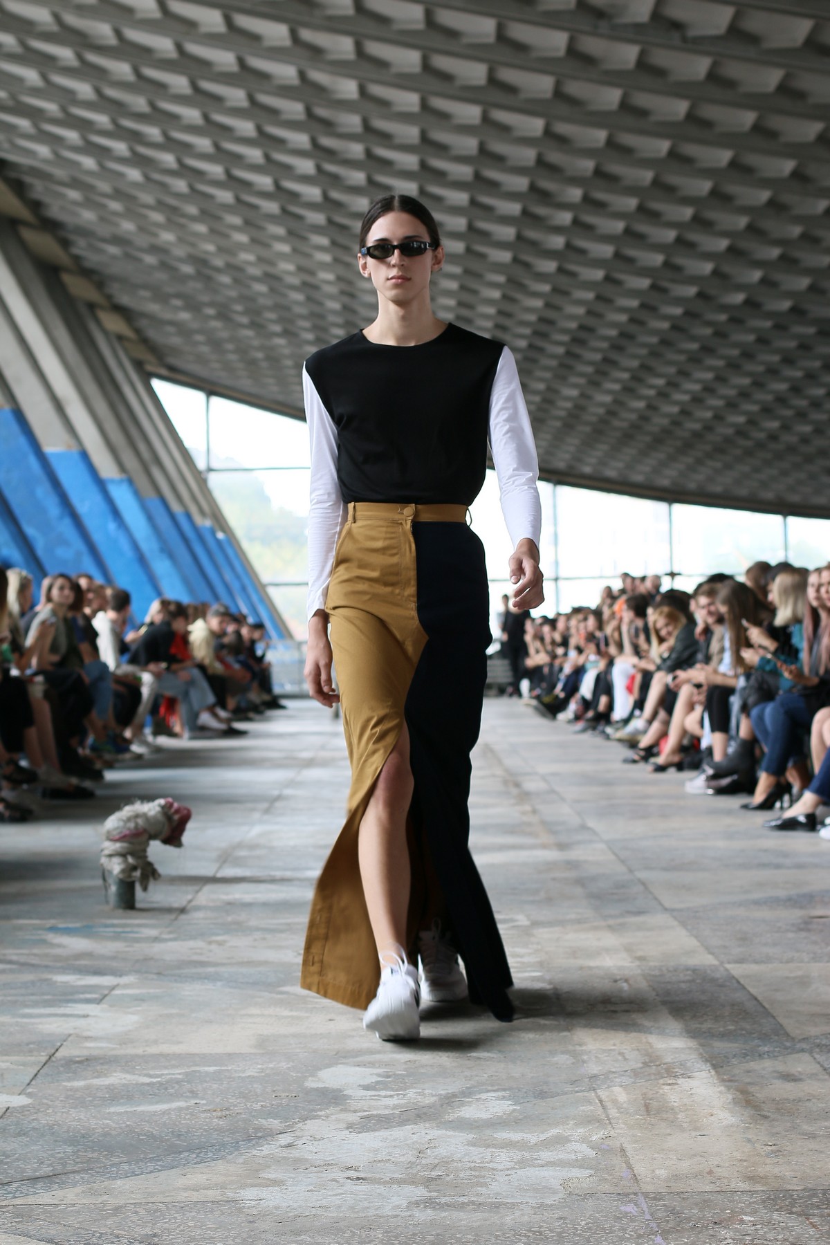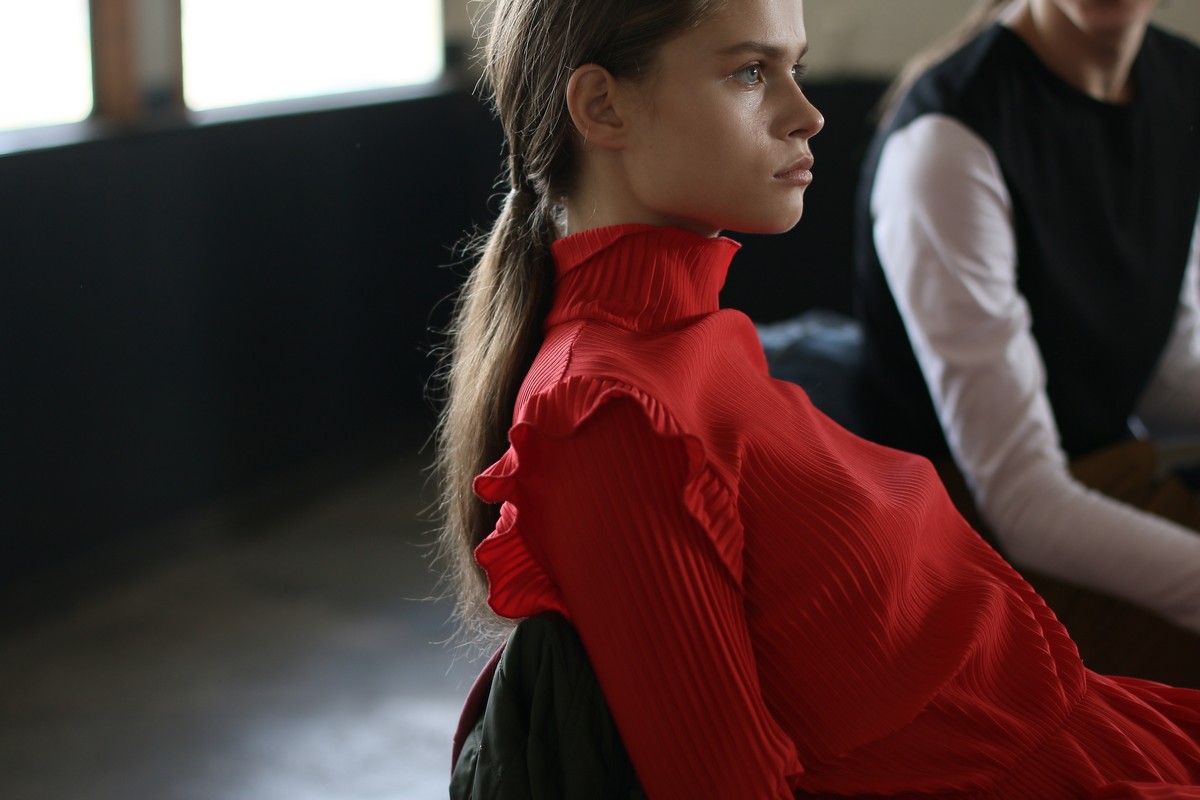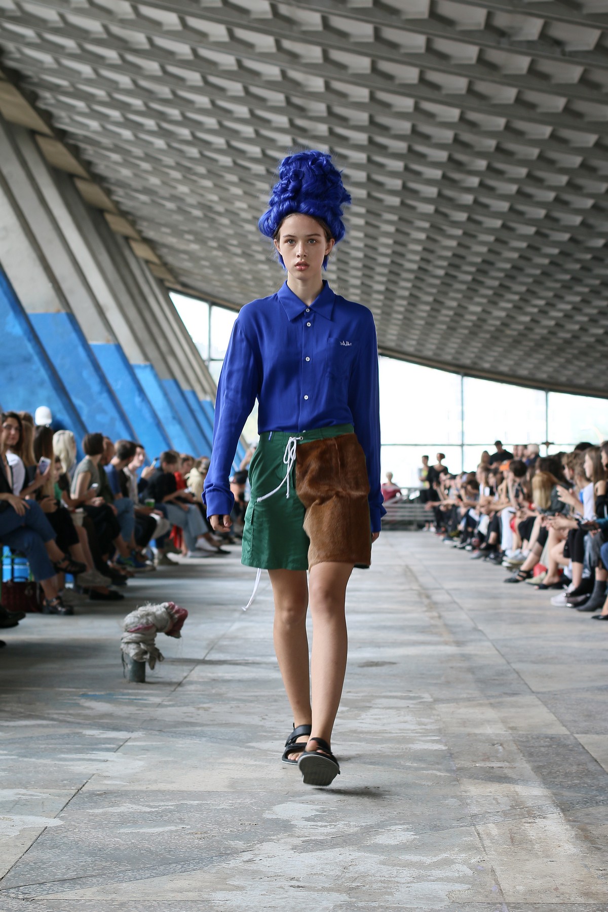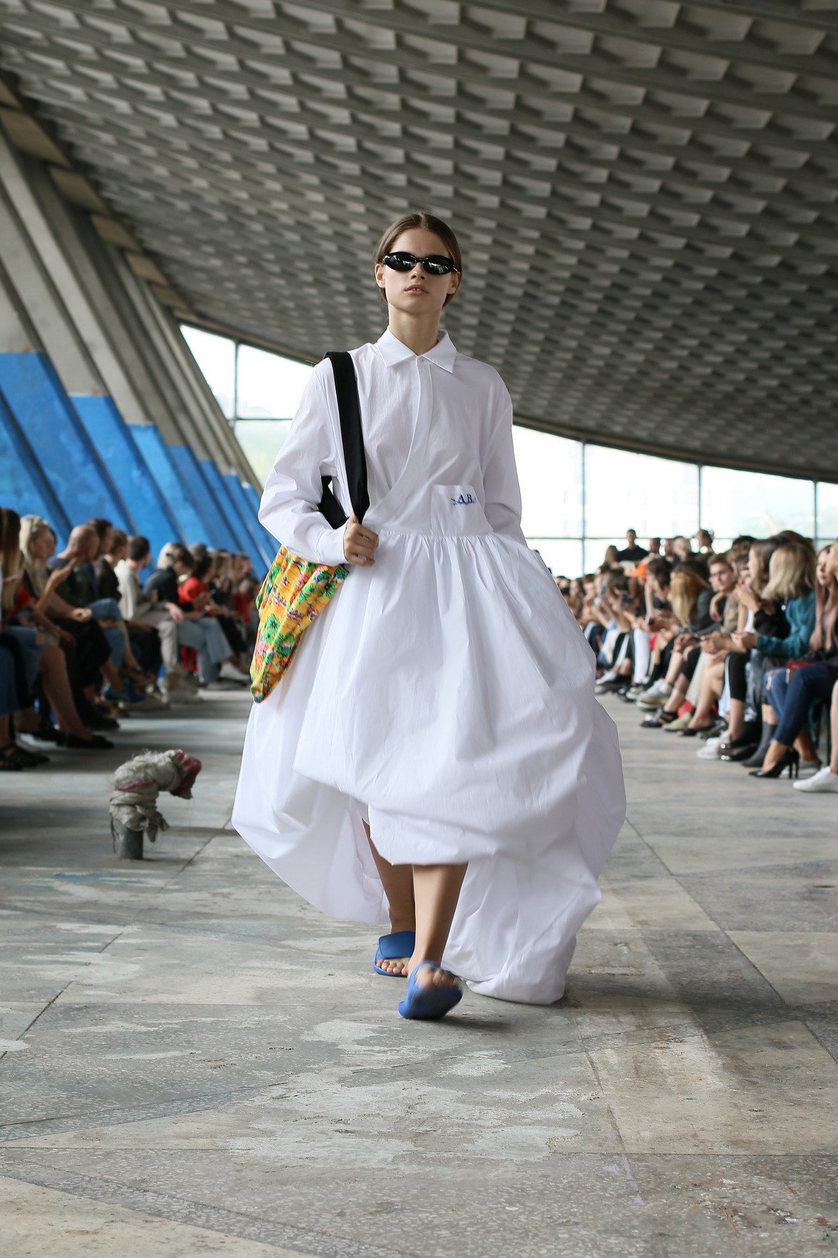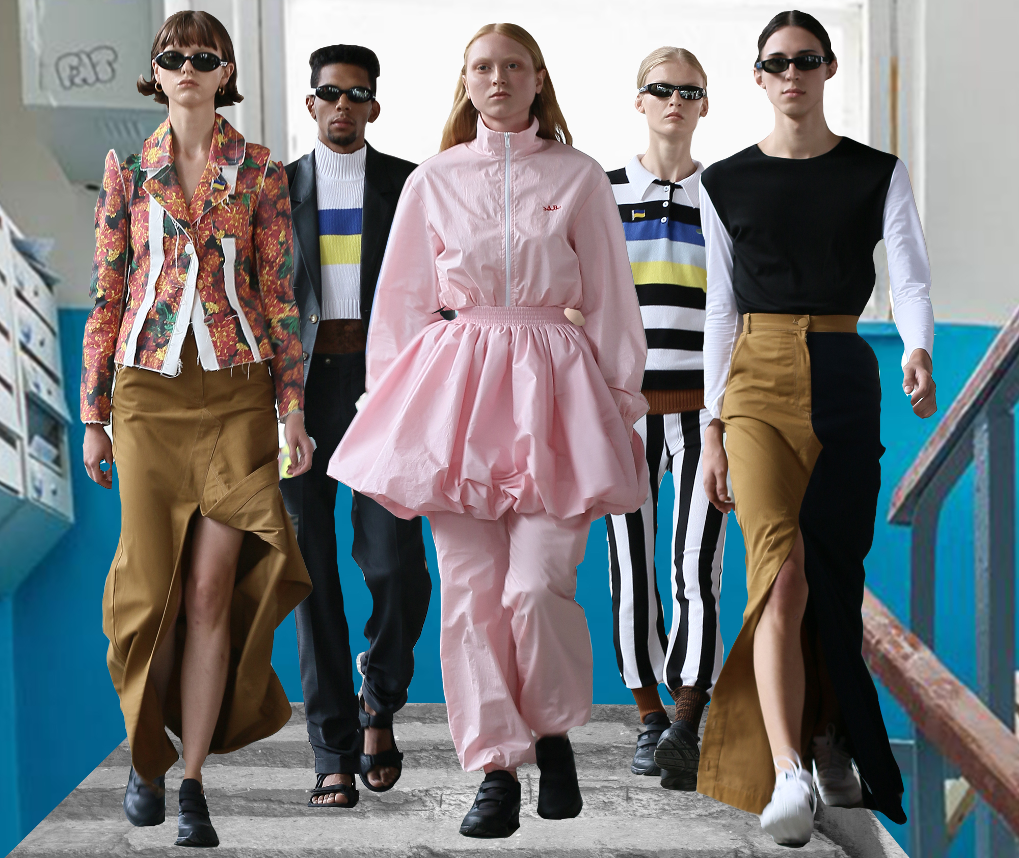 Главными цветами коллекции стали розовый, уже традиционный для бренда синий, черный, коричневый, зеленый и желтый. Отдельно стоит отметить принты, на которые Белинский в этом сезоне особенно щедр, а также реглан, где дизайнер представил совместную "коллаборацию" с художником Вовой Воротнёвым. Для этого Белинский и Воротнёв просто поменялись фамилиями. Так они иронизируют на тему мирового модного сотрудничества между дизайнерами.