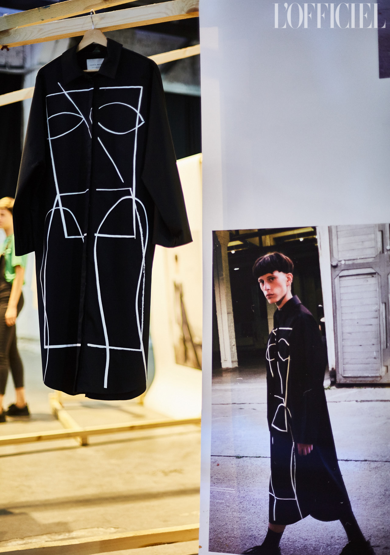 В этом сезоне в рамках One day project Маша Рева презентовала коллекцию, созданную совместно с киевским брендом Syndicate. Все действо происходило в арт-пространстве «Изоляция» в атмосфере андеграундной выставки: Маша повесила свои работы с абрисами лиц на деревянную инсталляцию, и плащи, рубашки и толстовки стали арт-объектами. По большому счету, все, к чему прикасается Маша, можно смело называть современным искусством: ведь ее художественный стиль оригинален и отточен, а вещи в ее руках магическим образом приобретают новую жизнь.