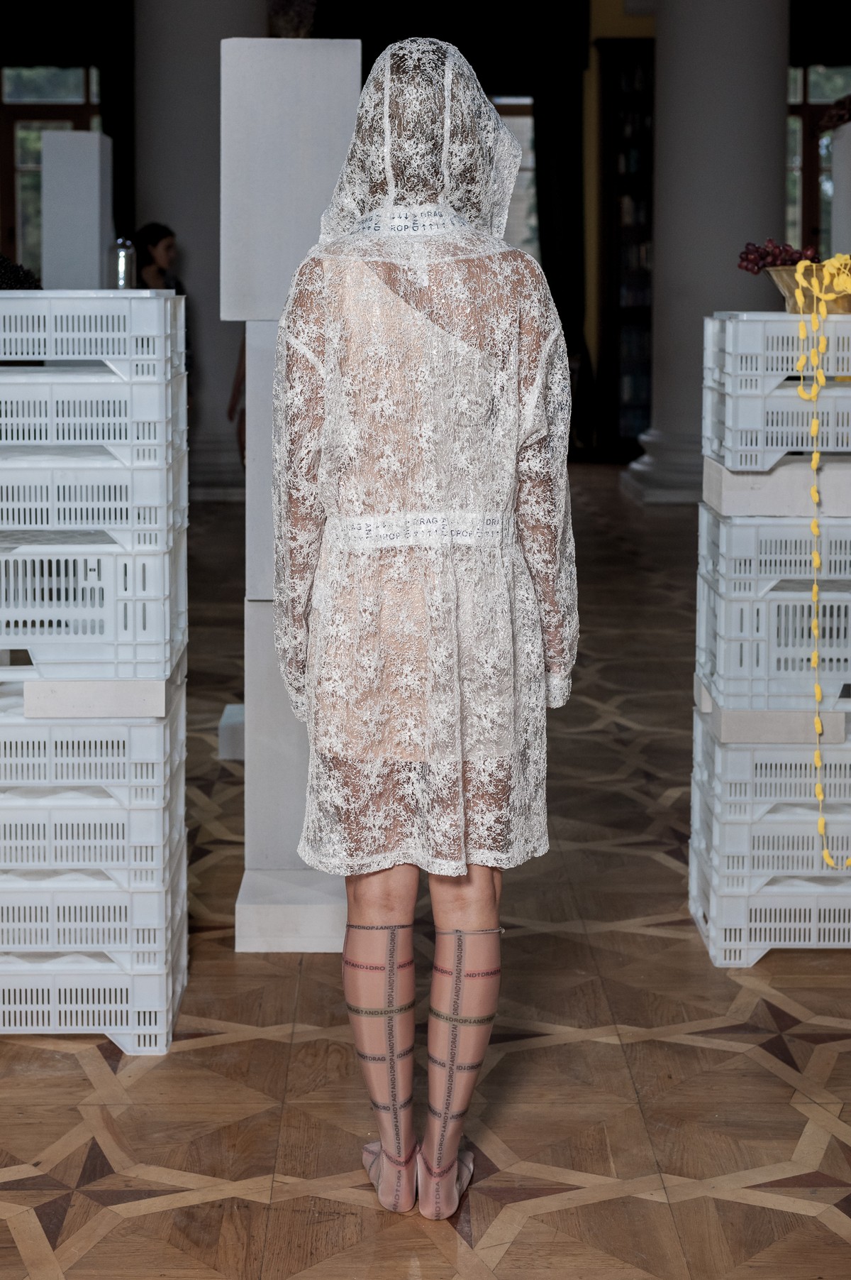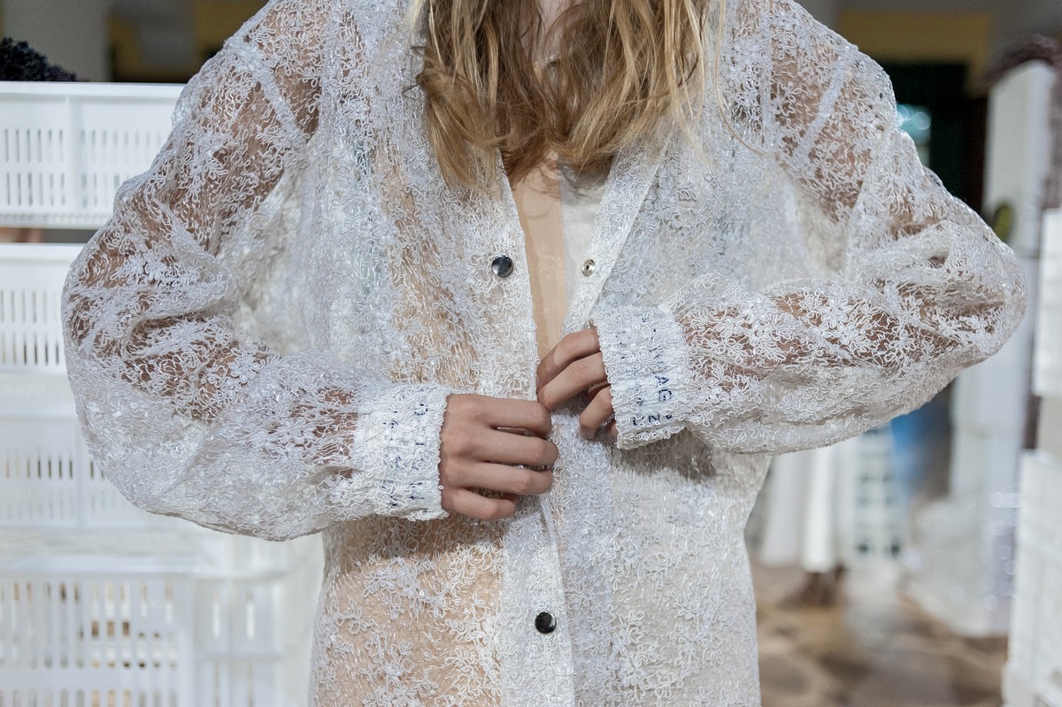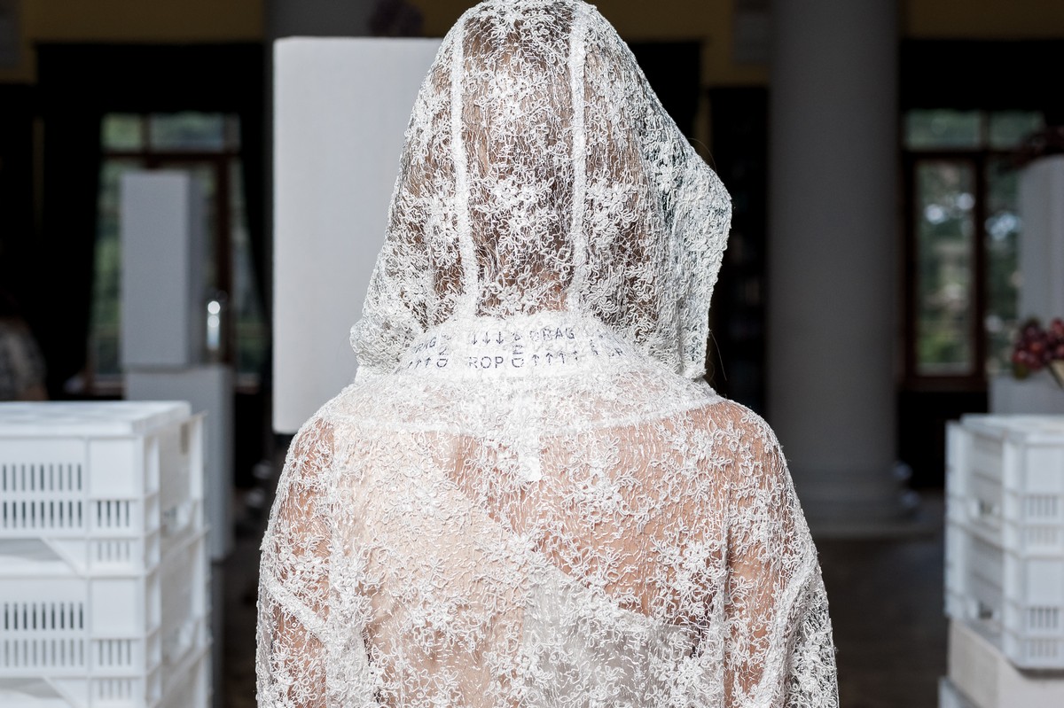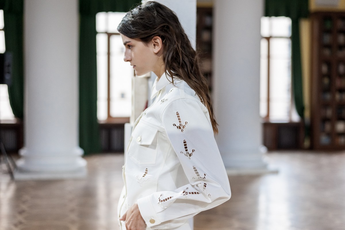 Отдельно отметим, что впервые бренд за свою историю использует технику вышивки ришелье и неоклассические шрифты.