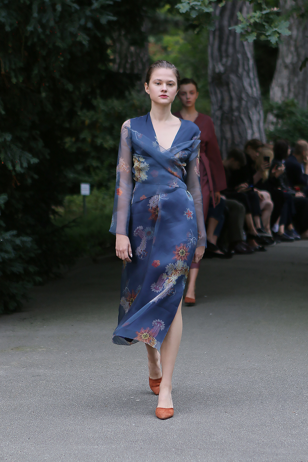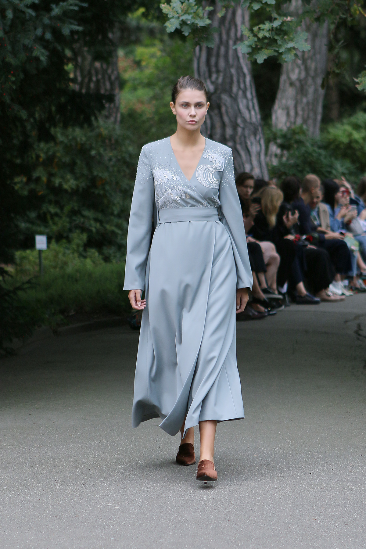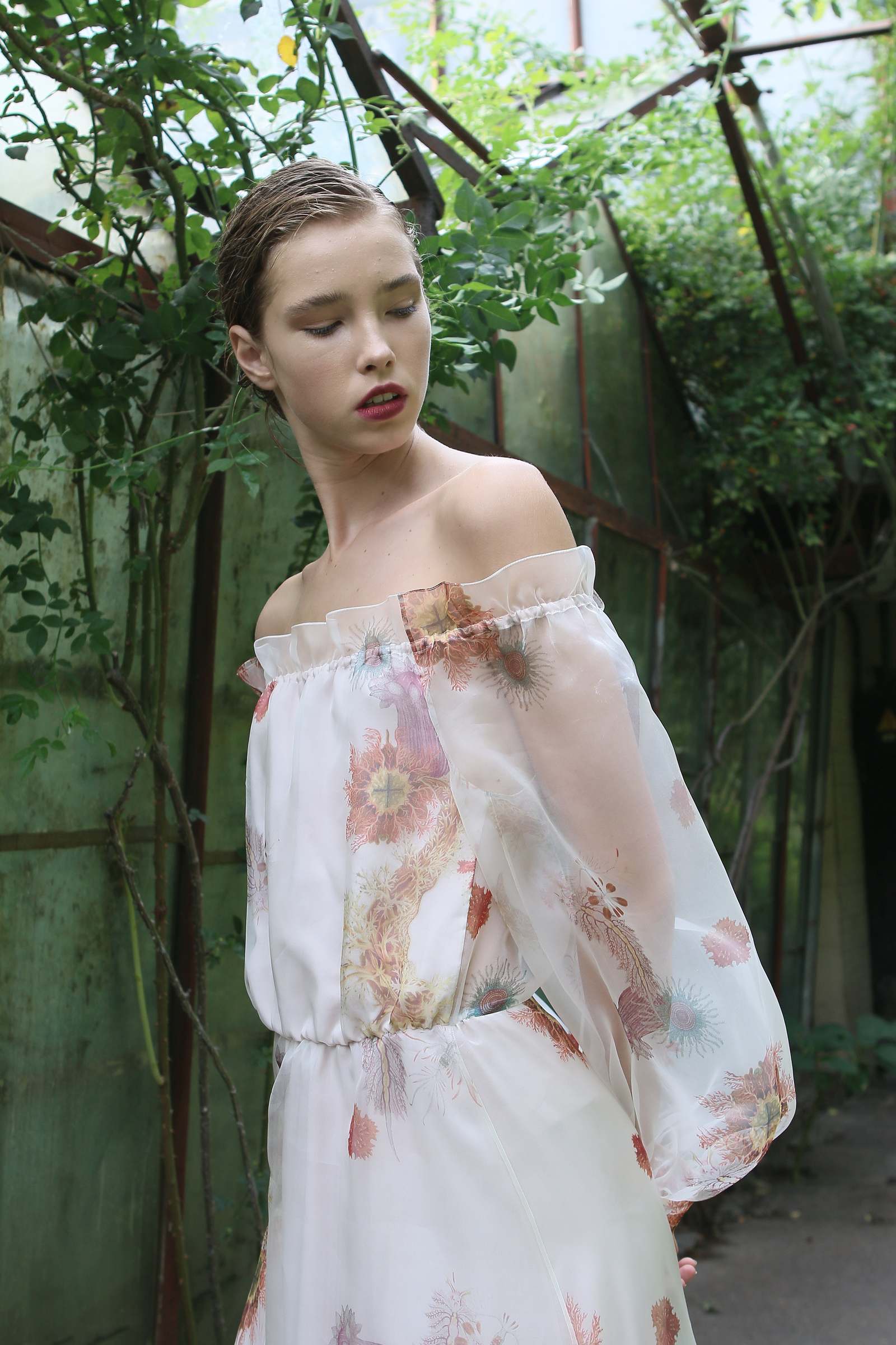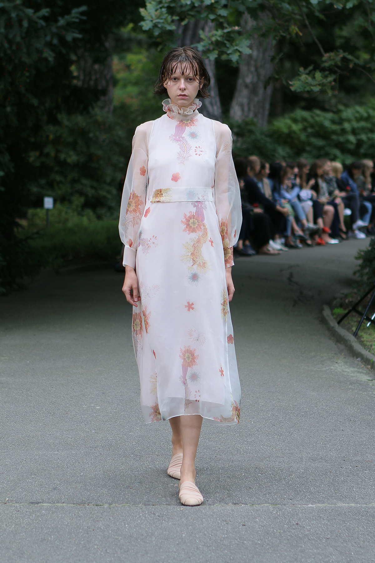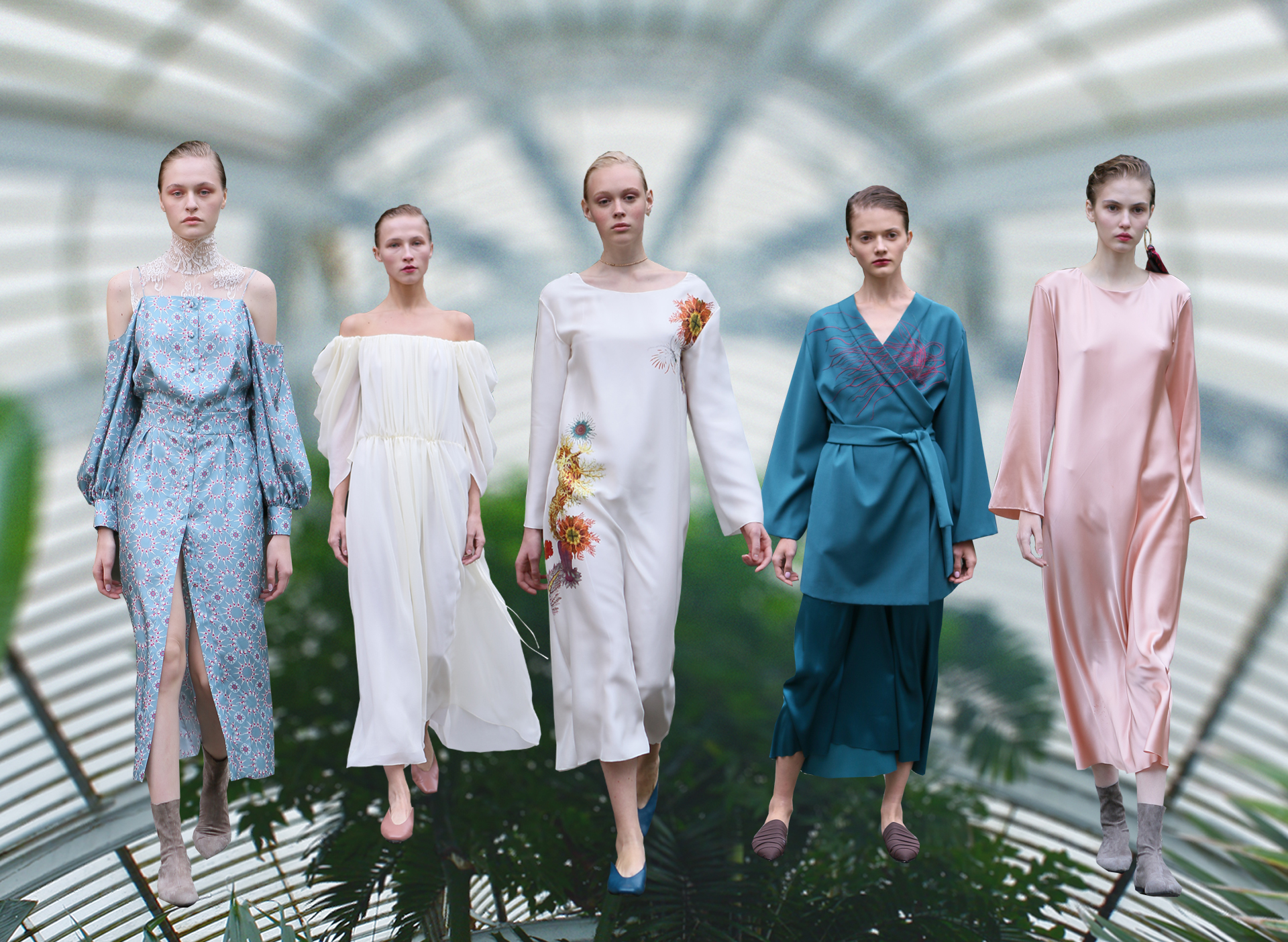 Показ проходил в научной части Ботанического сада имени Фомина; креативной команде бренда очень хотелось организовать шоу на открытом воздухе, и их не напугала даже потенциальная возможность дождя. Риск оказался совершенно оправдан: модели переодевались в оранжереях, а гости рассаживались вдоль дорожек, предварительно получив шанс прогуляться по тропинкам мимо уникальных растений удивительной красоты. Сопровождала показ живая музыка в исполнении группы New Brain Trio, которая довершала и без того волшебную атмосферу, – эти звуки, подобно тому самому пению сирен, очаровывали, манили и завораживали.