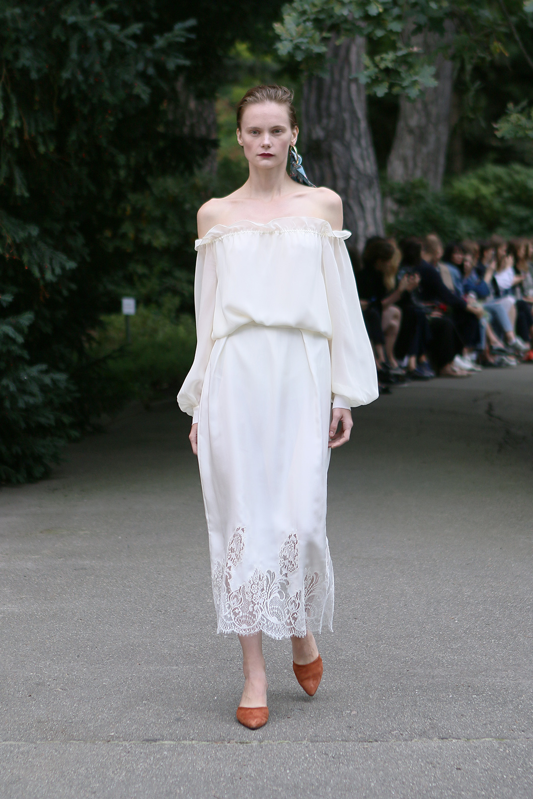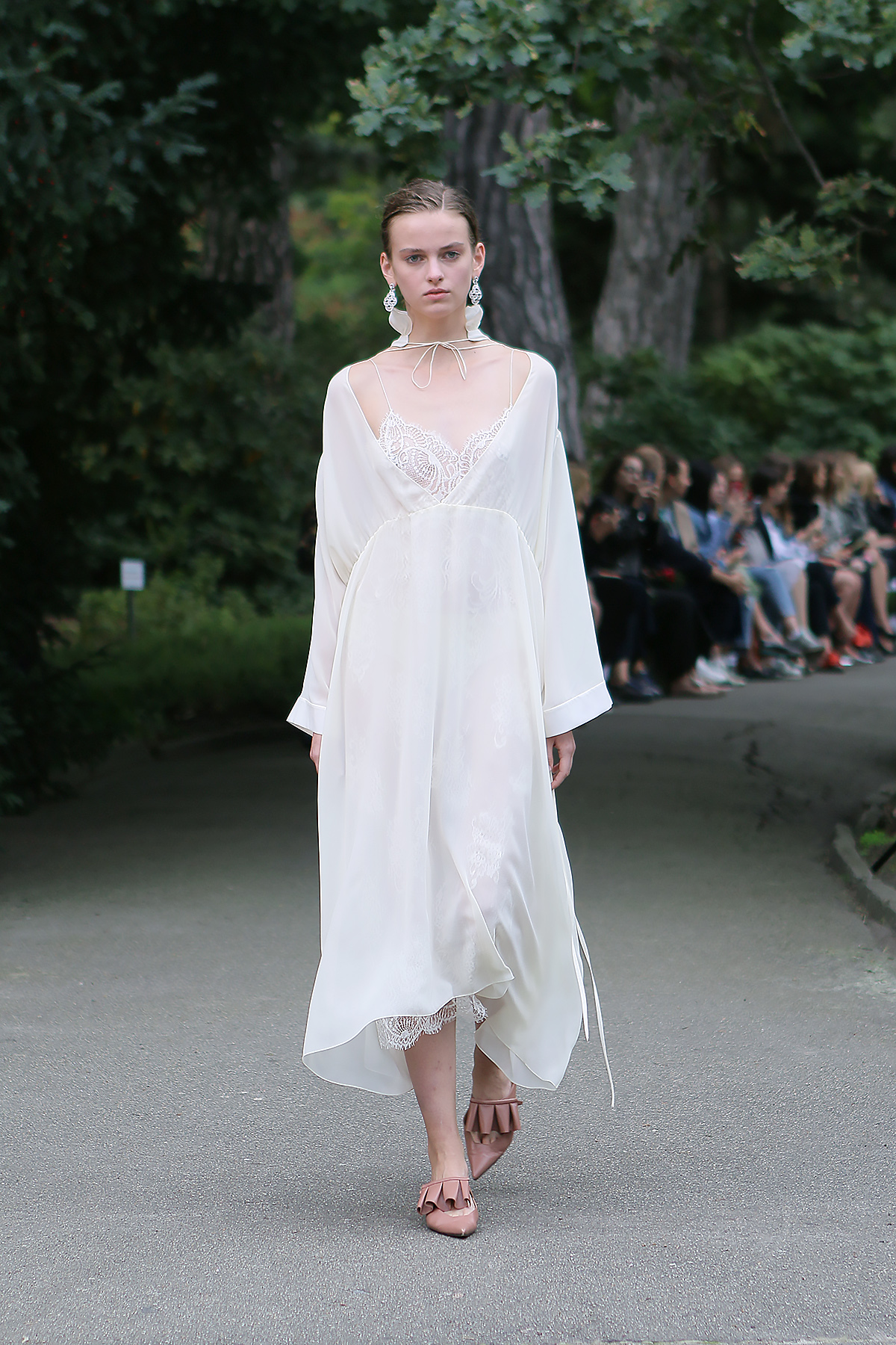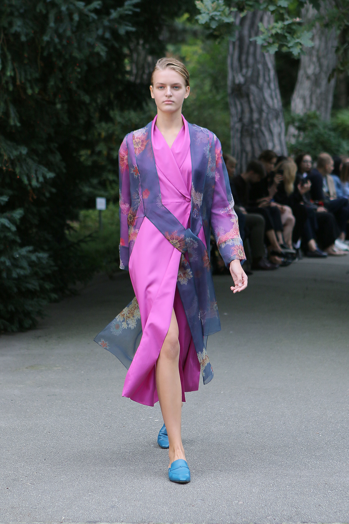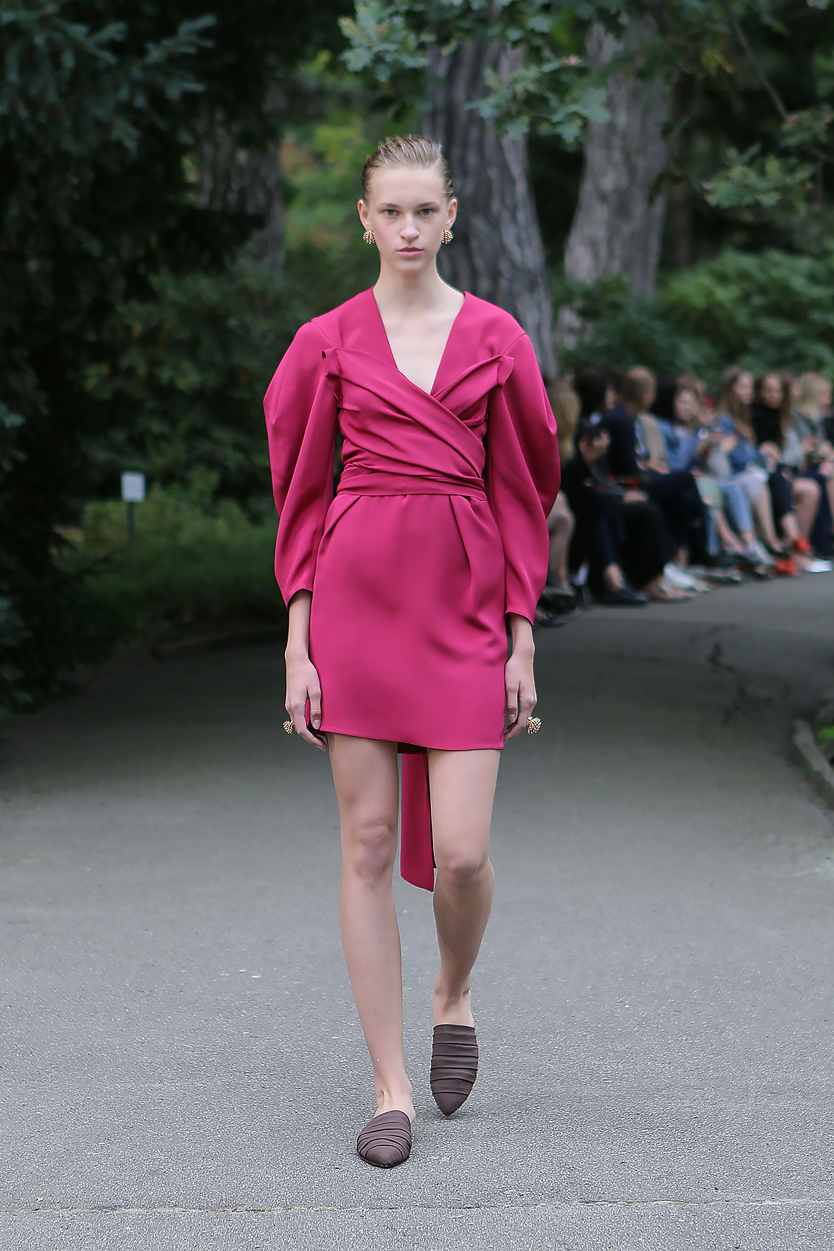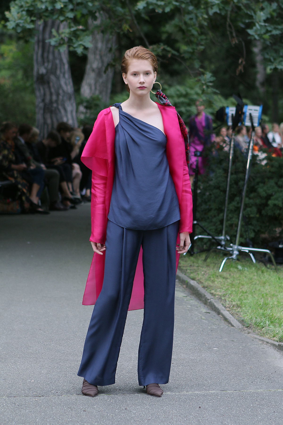 Показ проходил в научной части Ботанического сада имени Фомина; креативной команде бренда очень хотелось организовать шоу на открытом воздухе, и их не напугала даже потенциальная возможность дождя. Риск оказался совершенно оправдан: модели переодевались в оранжереях, а гости рассаживались вдоль дорожек, предварительно получив шанс прогуляться по тропинкам мимо уникальных растений удивительной красоты. Сопровождала показ живая музыка в исполнении группы New Brain Trio, которая довершала и без того волшебную атмосферу, – эти звуки, подобно тому самому пению сирен, очаровывали, манили и завораживали.